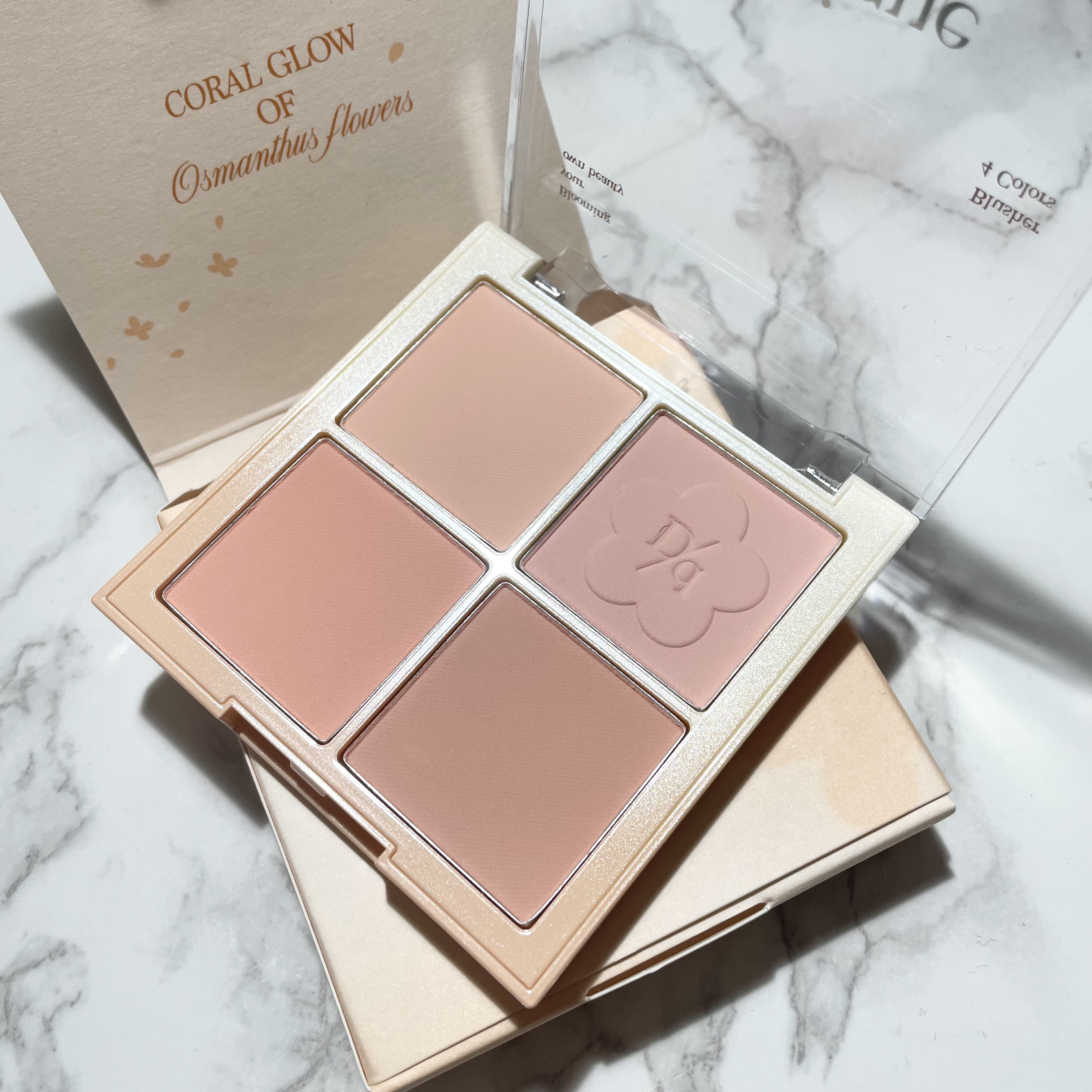 1個4色入りの捨て色なしチークパレット♡ なんと!!9色アイシャドウパレットと同じ大きさ! 柔らかいウォームピーチベージュ。 オレンジ寄りのピーチメイクもピンク寄りのピーチメイクもどちらにも使える! まろやかなくまさんブラウン。 下のブラウンが特にイエベ秋にドンピシャ!