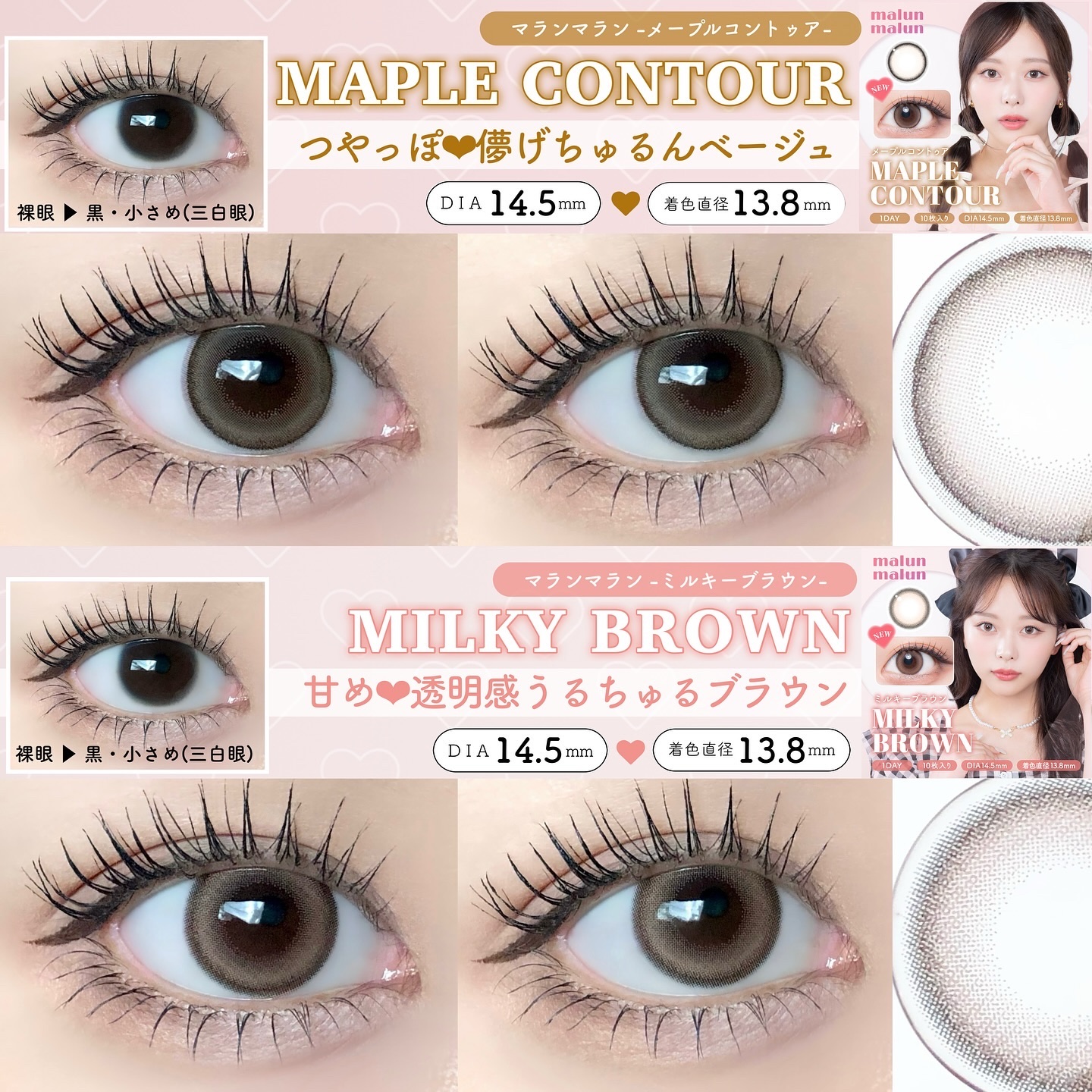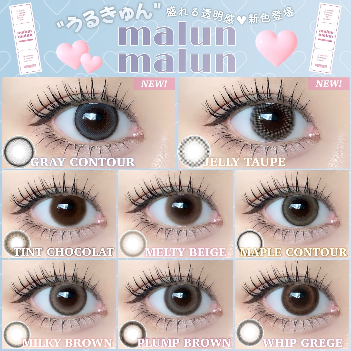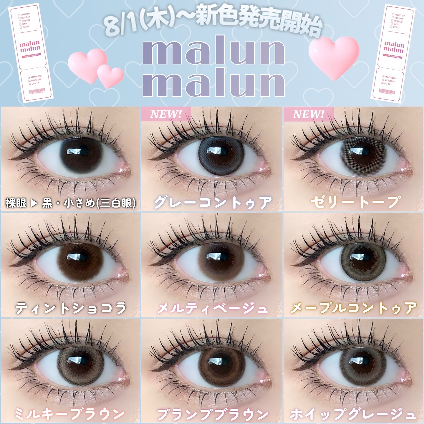 momohoちゃんプロデュースカラーあり♡ malun malun 新色をレビュー🎀 ダブルハイライトデザインの水光カラコン。透明感のある甘めグレージュできゅるんとビー玉のような仕上がり♡ どちらも“かわいい”がたくさん詰まっていてつけるだけでテンション上がるし、可愛くなった気分になれちゃう...♡
