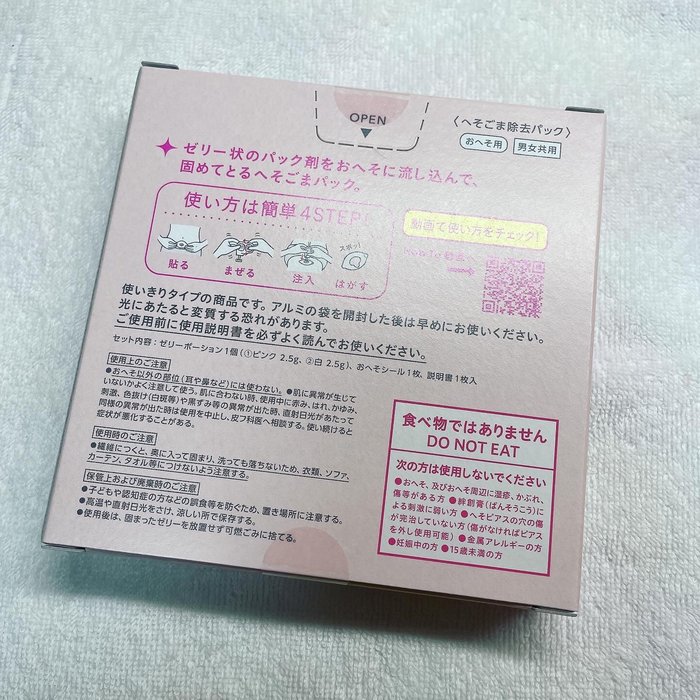 ゼリー状のパック剤をおへそに流し込んで、固めてとるへそごまパック汚れがスポッ!ととれて、こびりついた垢やニオイ汚れ※もすっきりキレイ!歯形を取る材料をヒントにへそごま除去用に開発した、肌にやさしい素材を使用(※ニオイの原因...