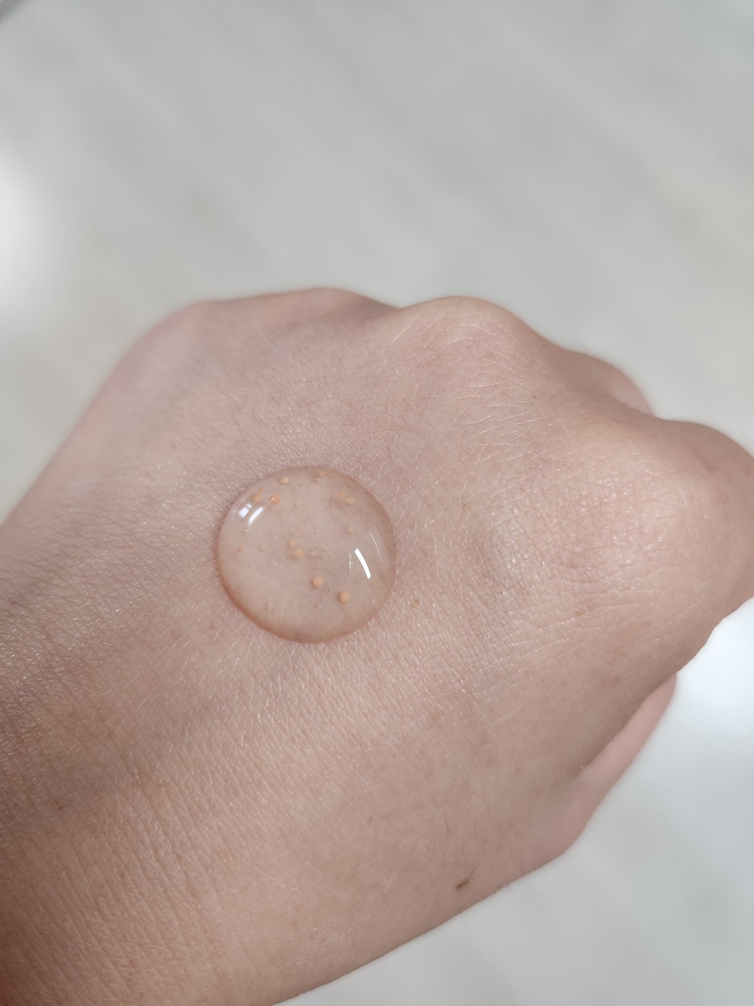 テクスチャーはとても軽く、肌になじみやすいです。 まるで水のようなさっぱりとした感じ。 肌全体のトーンが少し明るくなった気がしました。 特に、頬にある茶色っぽいニキビ跡が少しずつ薄くなってきたのを実感しました。 アルブチンがメイン成分ですが、美白だけでなく、エイジングケアにも効果を感じられました。