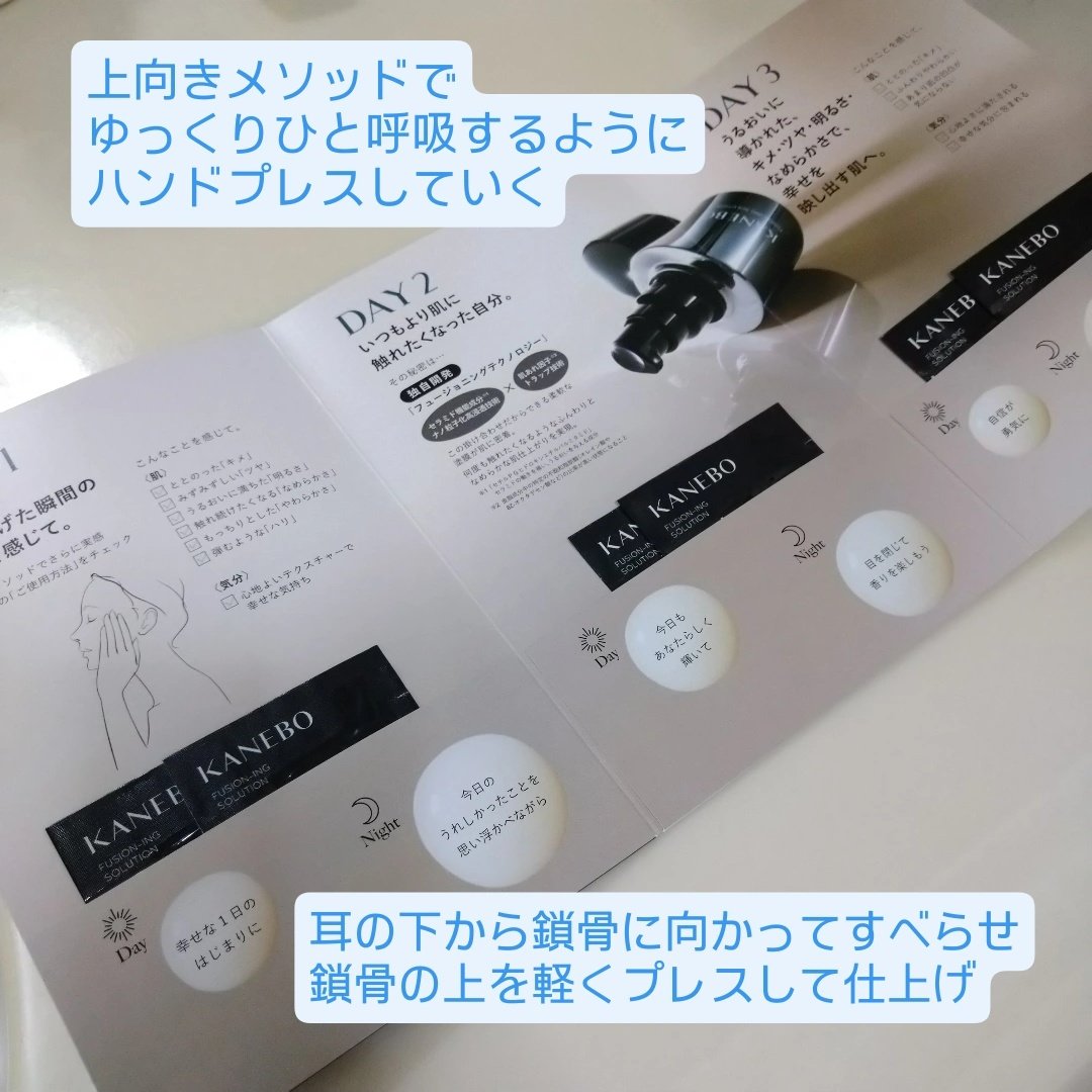 kaneboフュージョニングソリューション半分以上使ったと思うからレポ!導入美容液!緩いジェルよりのなめらかテクスチャー馴染ませた後はもっちりした付け心地香りがめっちゃいいハーモナイザーと同じ香りけど肝心な効果はよくかわらず🤔#購入品レビュー...