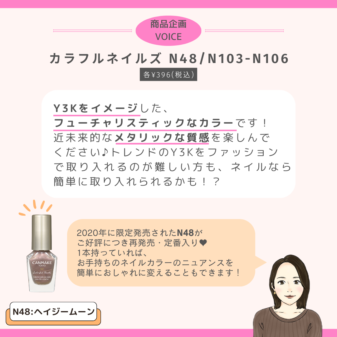 Y3Kとは『Year of 3K』の略。 3000年代をイメージした近未来的なファッションスタイルなんだそう! 今回の新色は宇宙のきらめきのような繊細なパールやホログラム配合していてギラギラ✨ N103 アストロノミー(限定色):ブルーパールがちらちら輝くクリアブルー