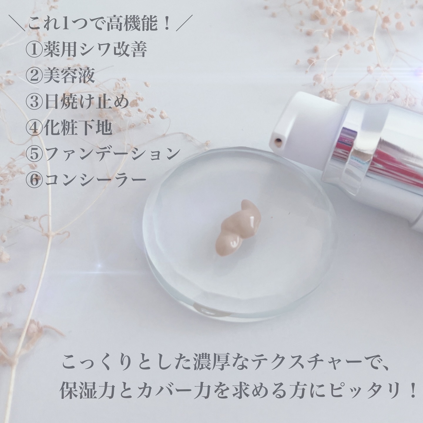 美容液・薬用シワ改善・化粧下地・コンシーラーと嬉しいとこどりのファンデーション 日焼け止め(SPF38/PA+++)まで ベタベタ感もなくスルスル伸びるので厚塗りにならない でもキレイな仕上がり カバー力も程よくありコンシーラーいらずのファンデーションなのでメイクの短縮にもなっちゃう
