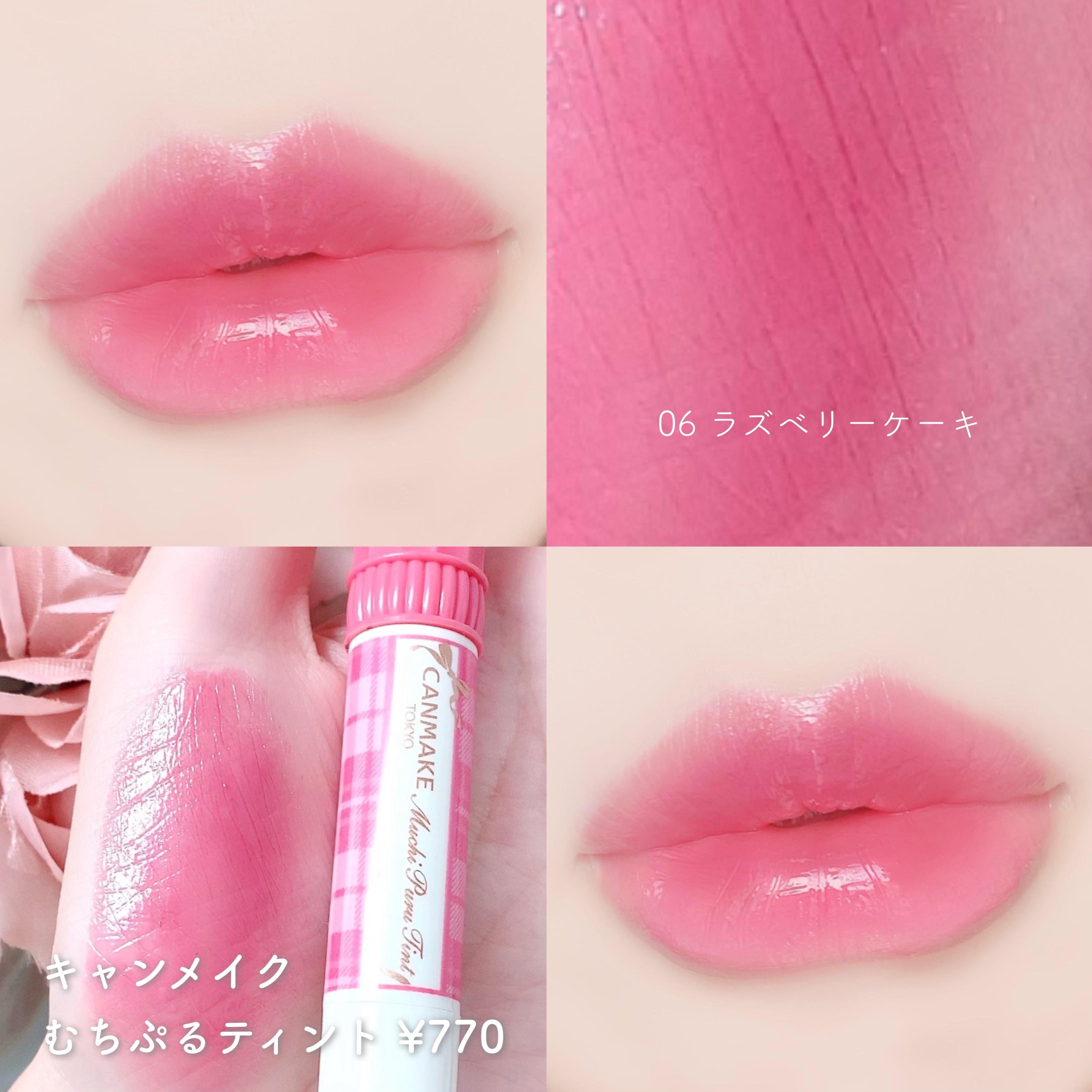 キャンメイクむちぷるティント¥77002モモ血色感のあるニュートラルピンク。イエベ春さんやブルベ夏さんにおすすめです。06ラズベリーケーキ大人っぽい青みモーヴピンク。1st.2nd共にブルベさんにおすすめです。07フルーツオレ使いやすい白みコ...