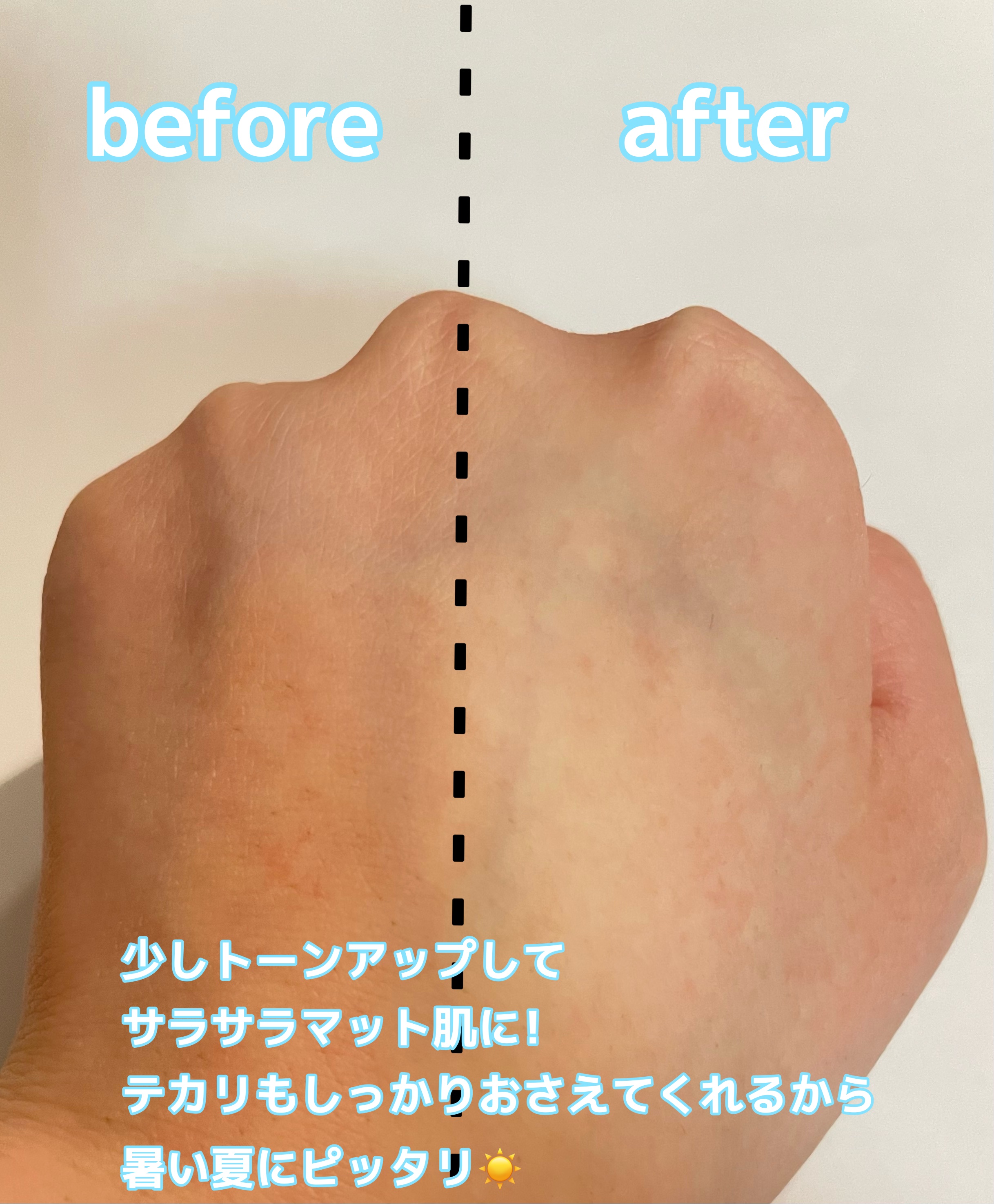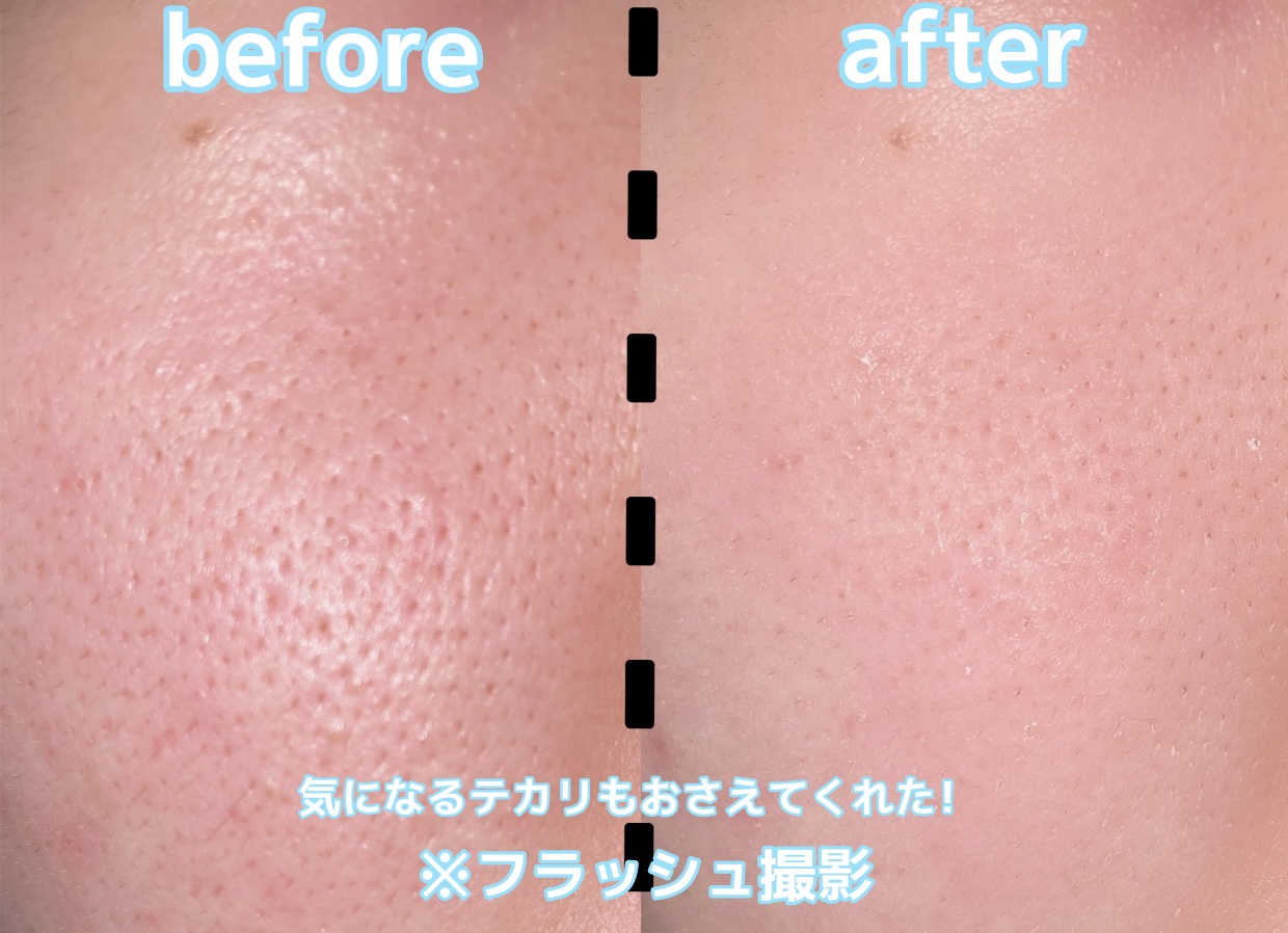 塗った瞬間から肌が、サラッサラ🥹!! しかもそれを長時間キープしてくれるの! フォーベリーオイリースキンは、フォーオイリースキンと比較してテカリ吸収パウダーが120%配合でされているから、よりしっかりとテカリをブロックしてくれるよ🌿 どちらも毛穴をふわっとぼかしてくれるから肌がふんわり綺麗に見えるの。ほんとに加工したかのような肌😭🩷