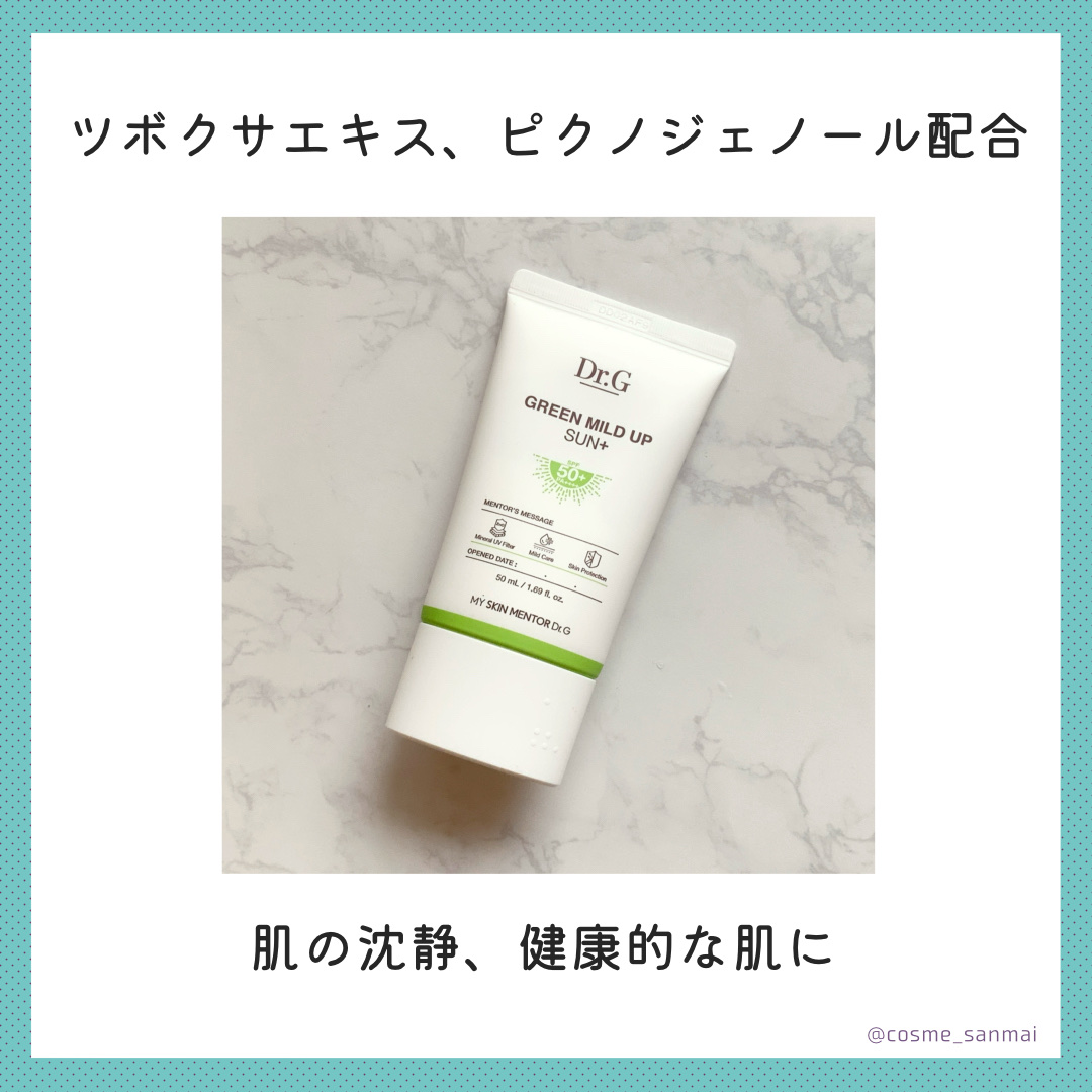 敏感肌さんにもオススメなDr.Gのグリーンマイルドアップサンプラス! 5つの刺激から肌を保護!! 敏感肌のためのノンケミカル日焼け止め🌞 まるでスキンケアクリームのような塗り心地だったの!!敏感肌でも刺激なく優しく使えるのも嬉しいポイント!!
