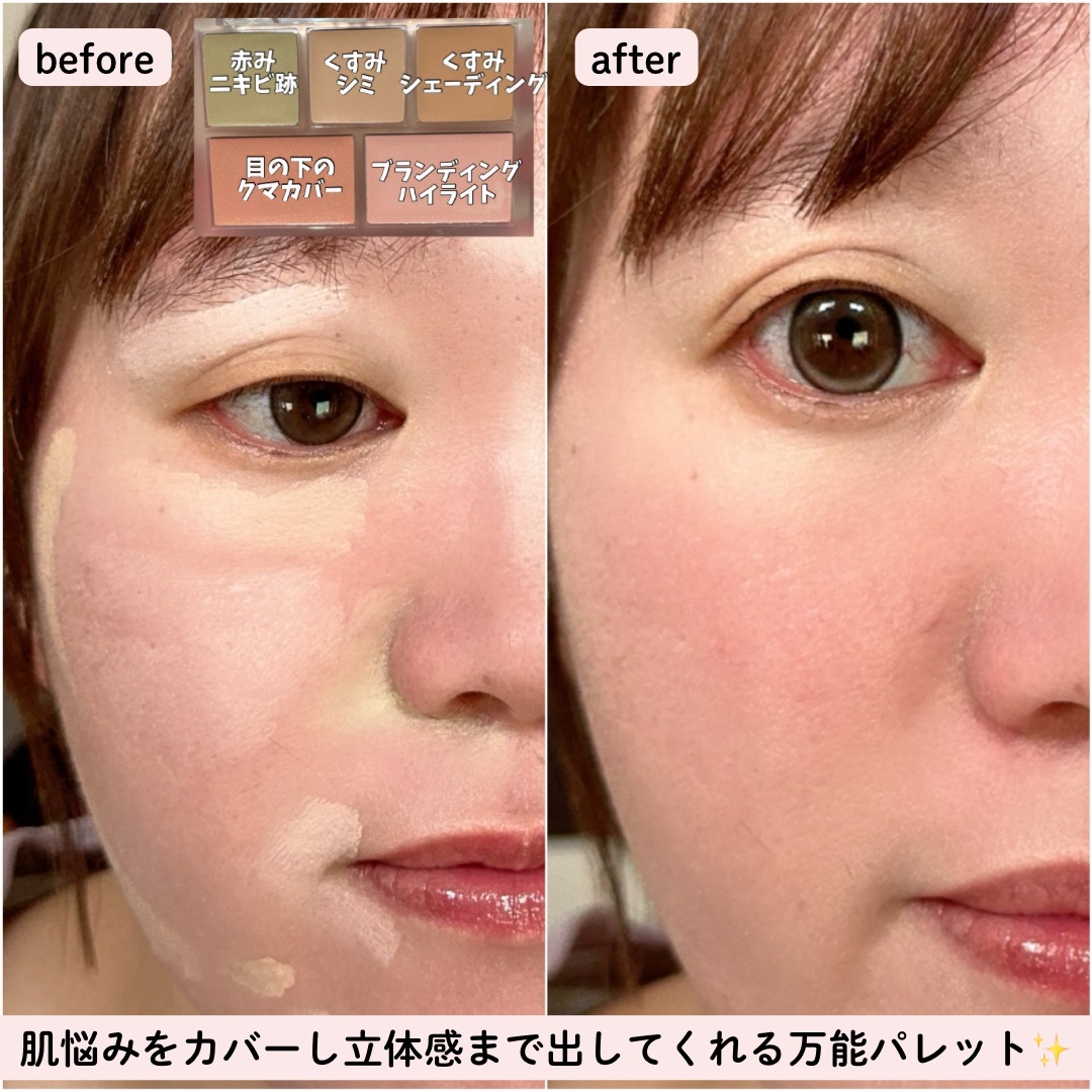一つのパレットでカバーからカラーコントロールまでできちゃうコンシーラーパレット! 色んな肌悩みにアプローチする5色のカラーで、グリーン▶️くすみ、ニキビ跡とかの赤みカバー 密着力が高いコンシーラーで、よれにくかったよ!