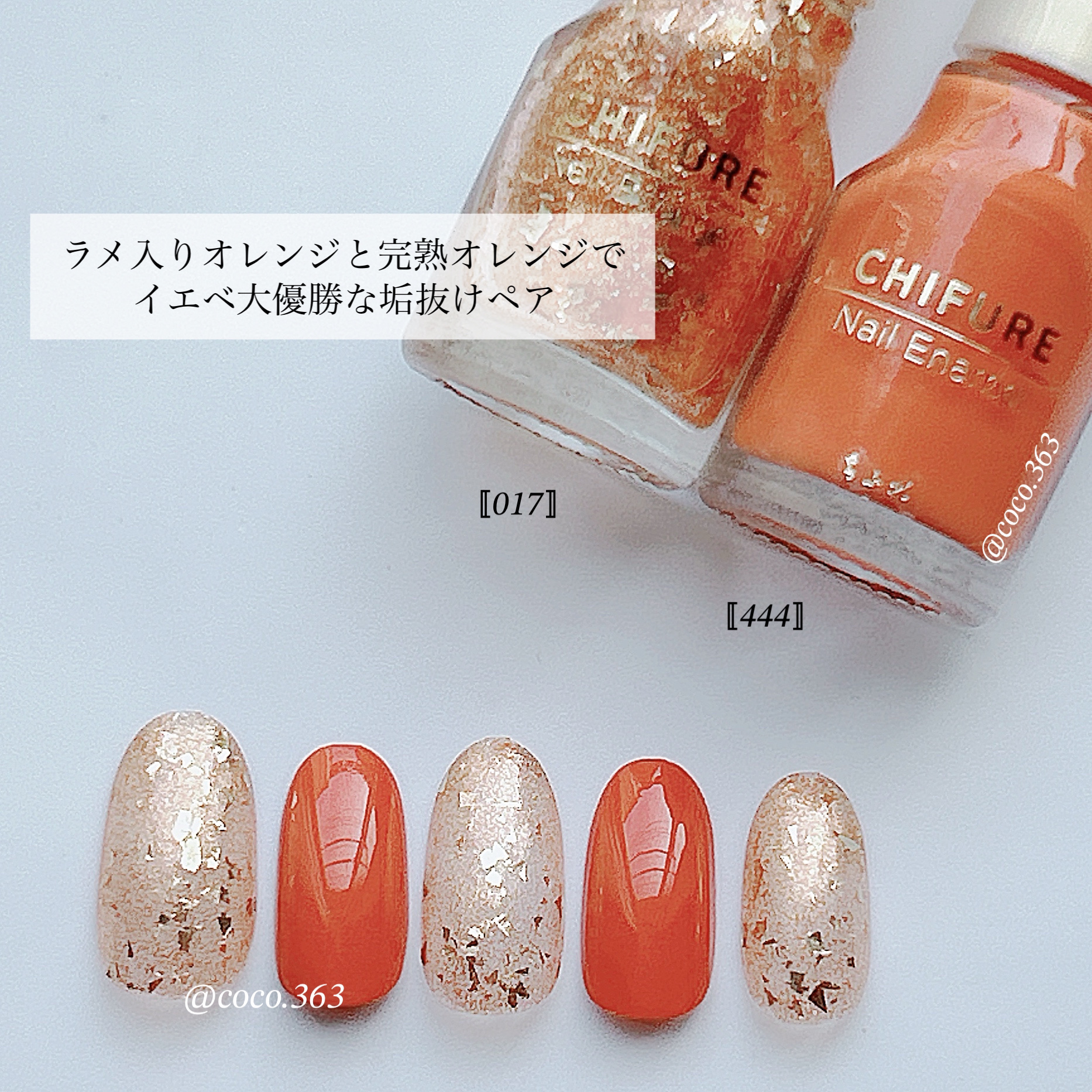 ちふれが良いカラー揃いすぎてて💕 たくさん購入したので秋色まとめておきます🍁 まっしろではなくちょっとくすんだようなアイボリー系なのが暖かみがあって欲しかった白色🙌 パンプキンっぽいオレンジ🎃ハロウィンネイルにぴったりで可愛いやつ