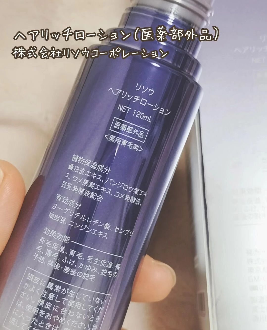 \日本初の成分を配合した育毛剤が発毛促進/リソウコーポレーションヘアリッチローション120mL⋆⋆大好きなリソウコーポレーション♡今回はヘアリッチローションのご紹介です🥰💕天然由来の薬用育毛剤。日本初*1の成分「ライスエナジー100*2」をは...