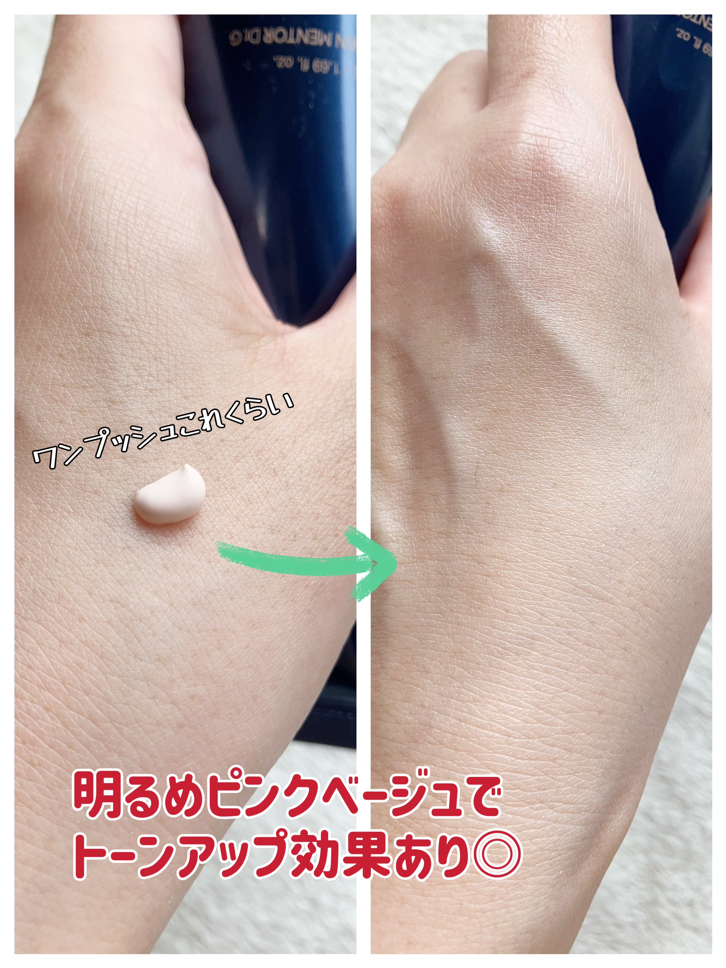 スキンケア効果の高いサンクリームを使用しました🎵 美白効果の高いグルタチオンやナイアシンアミドが配合されていて、化粧下地としても使える日焼け止めです。 薄いピンク色で、柔らかいテクスチャー。伸びが良く軽やかな付け心地。しっとりしてるのにベタ付かないのが、次に使うファンデーションの邪魔にならなくて良いです✨ SPF50/PA++++なので、日焼け止めと化粧下地が1つなので忙しい朝の強い味方です💕