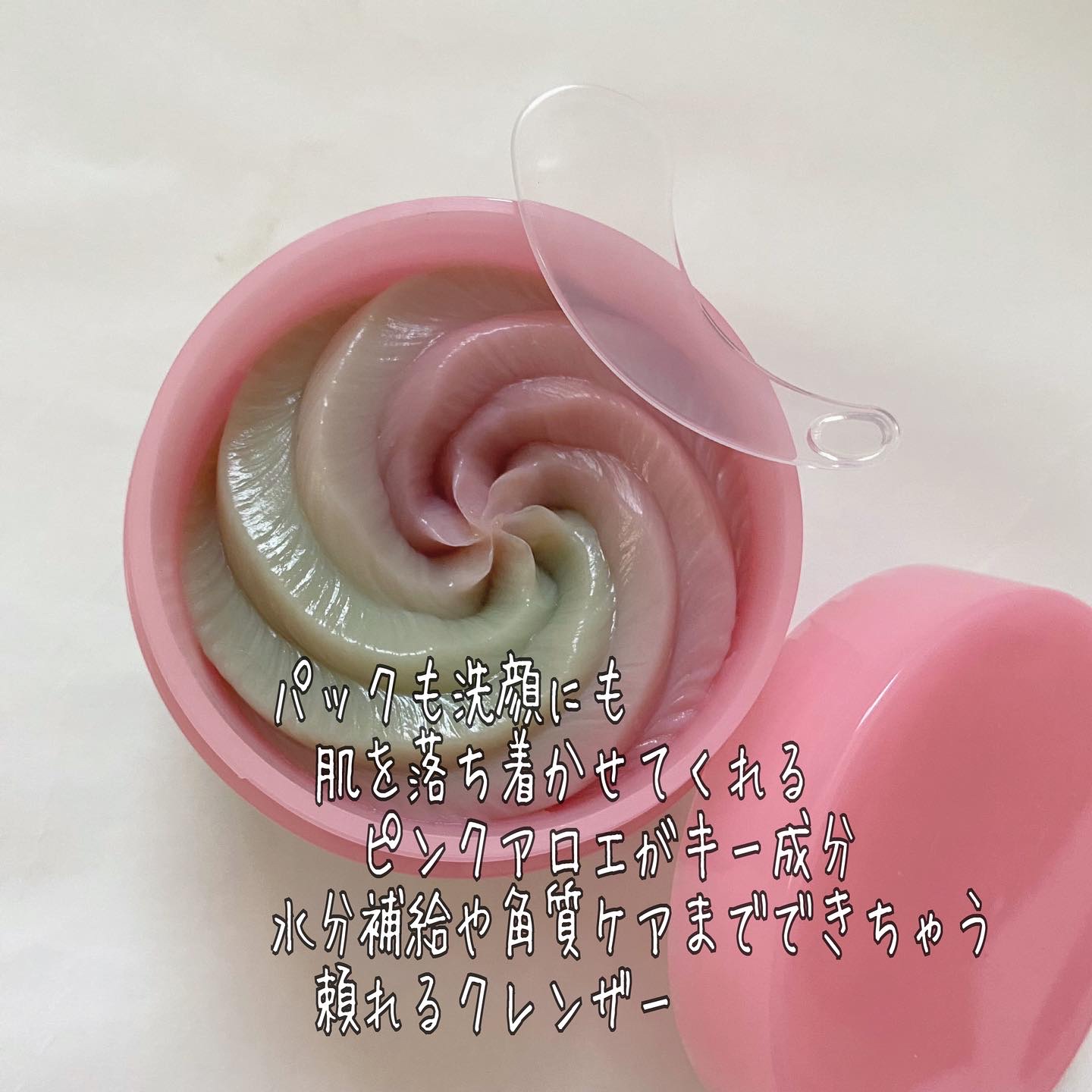 APRILSKINピンクアロエメレンゲクレンザー洗顔、パックにも使える新感覚2wayクレンザー🫧ピンクアロエや豆スクラブ、グリーンの部分はツボクサエキスや緑豆スクラブなどが配合されてるみたい🌿✨肌表面のザラつきを滑らかにしてくれて、汚れもスッ...