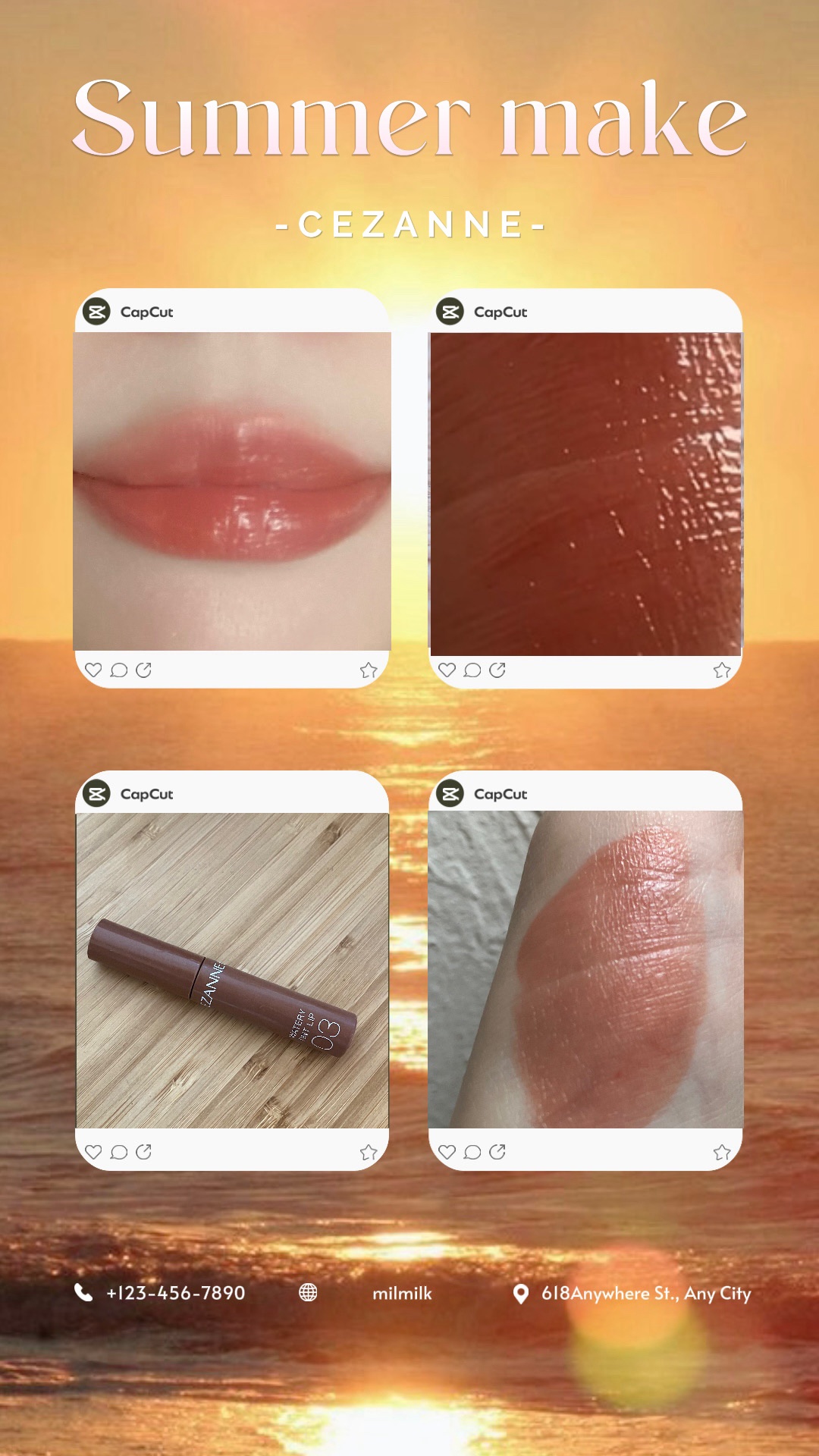 - ツヤ×色×潤いをキープする、セザンヌの新濡れツヤリップ みずみずしい濡れツヤ感ある仕上がりで、発色とツヤが長続きするティントリップです。ティントの発色を透明のベールで覆うリップコートのような処方で、ツヤ感と色をキープします。さらに、唇表面のべたつきは少なく、しっとり潤うオイルinウォーター処方を採用しています。