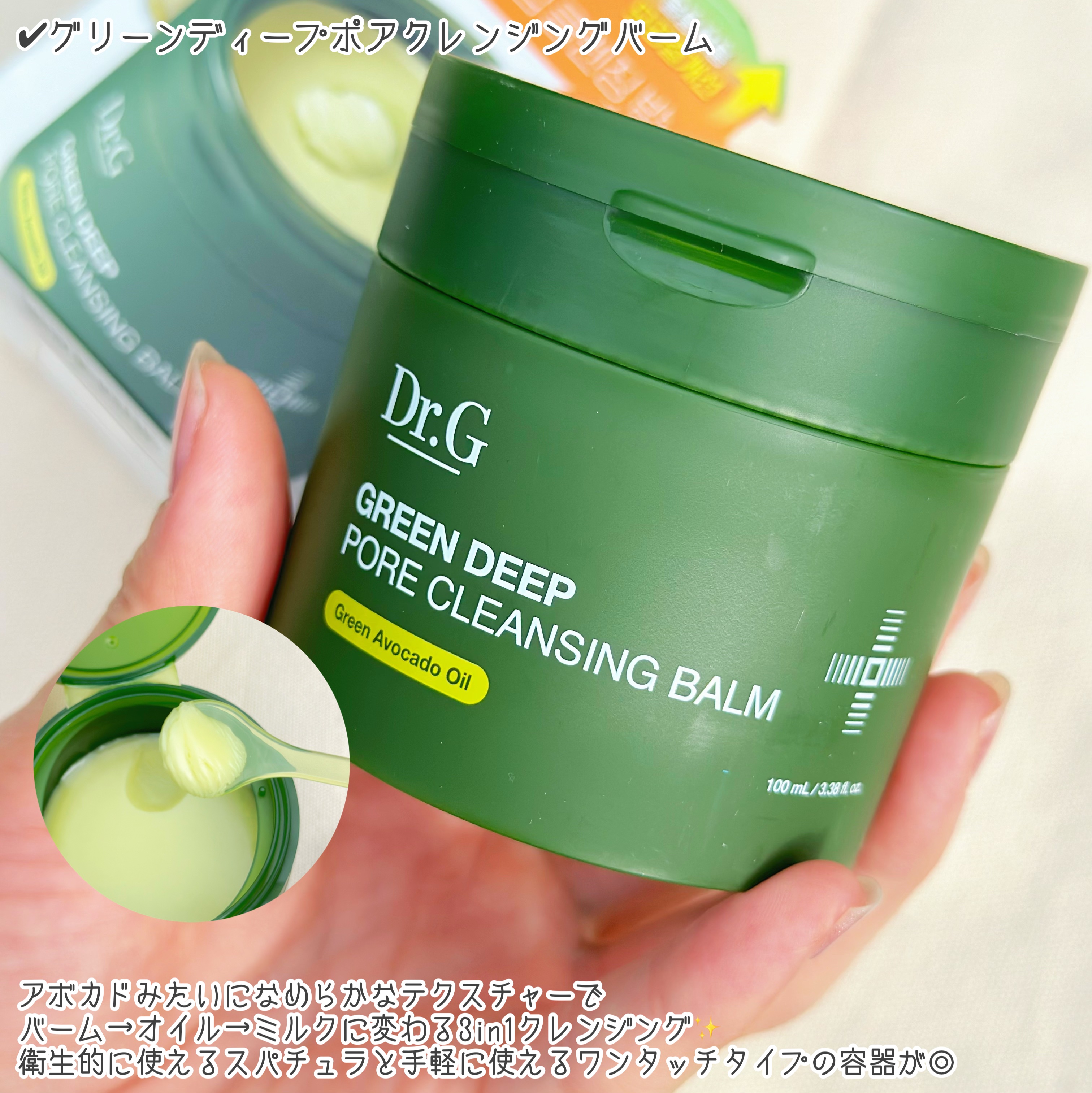 《Dr.G グリーンディープポアクレンジングバーム》@dr.g_official_jp様のグリーンディープポアクレンジングバーム3in1のアボカドシャーベットクレンジングバーム最初はバーム状メイク汚れなどを溶かしてオイルに変化ブラックヘッドや...