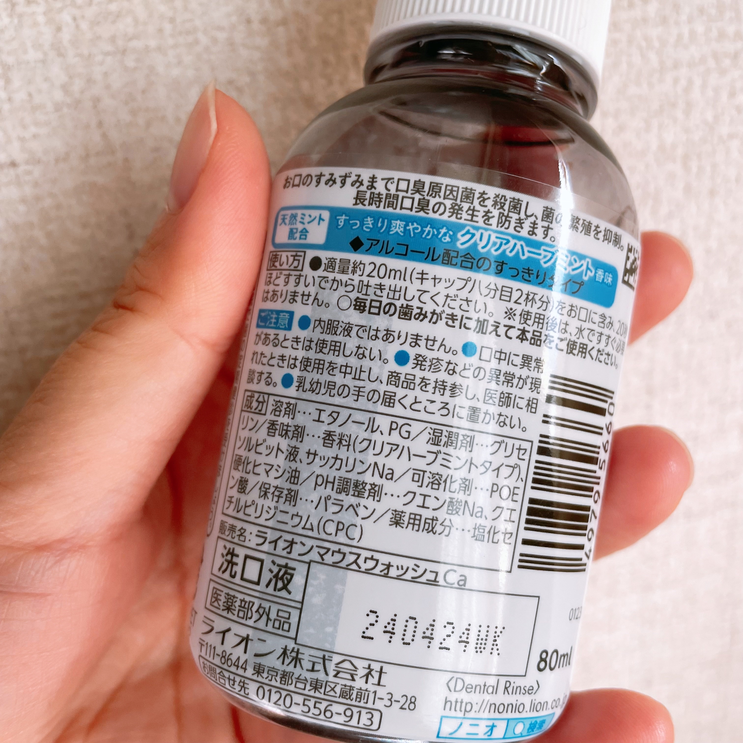 - <スプラッシュシトラスミント 1000ml> エタノール、PG、グリセリン、香料(スプラッシュシトラスミントタイプ)、ソルビット液、サッカリンNa、POE硬化ヒマシ油、クエン酸Na、クエン酸、パラベン、塩化セチルピリジニウム(CPC) <ノンアルコールライトハーブミント 1000ml> PG、香料(ライトハーブミントタイプ)、ソルビット液、サッカリンNa、グリセリン、POE硬化ヒマシ油、クエン酸Na、クエン酸、パラベン、塩化セチルピリジニウム(CPC) <クリアハーブミント 600ml> エタノール、PG、グリセリン、香料(クリアハーブミントタイプ)、ソルビット液、サッカリンNa、POE硬化ヒマシ油、クエン酸Na、クエン酸、パラベン、塩化セチルピリジニウム(CPC) <スプラッシュシトラスミント 600ml> エタノール、PG、グリセリン、香料(スプラッシュシトラスミントタイプ)、ソルビット液、サッカリンNa、POE硬化ヒマシ油、クエン酸Na、クエン酸、パラベン、塩化セチルピリジニウム(CPC) <ノンアルコール ライトハーブミント 600ml> PG、香料(ライトハーブミントタイプ)、ソルビット液、サッカリンNa、グリセリン、POE硬化ヒマシ油、クエン酸Na、クエン酸、パラベン、塩化セチルピリジニウム(CPC) <クリアハーブミント 80ml> エタノール、PG、グリセリン、香料(クリアハーブミントタイプ)、ソルビット液、サッカリンNa、POE硬化ヒマシ油、クエン酸Na、クエン酸、パラベン、塩化セチルピリジニウム(CPC) <ノンアルコール ライトハーブミント 80ml> PG、香料(ライトハーブミントタイプ)、ソルビット液、サッカリンNa、グリセリン、POE硬化ヒマシ油、クエン酸Na、クエン酸、パラベン、塩化セチルピリジニウム(CPC) <クリアハーブミント 1000ml> エタノール、PG、グリセリン、香料(クリアハーブミントタイプ)、ソルビット液、サッカリンNa、POE硬化ヒマシ油、クエン酸Na、クエン酸、パラベン、塩化セチルピリジニウム(CPC)