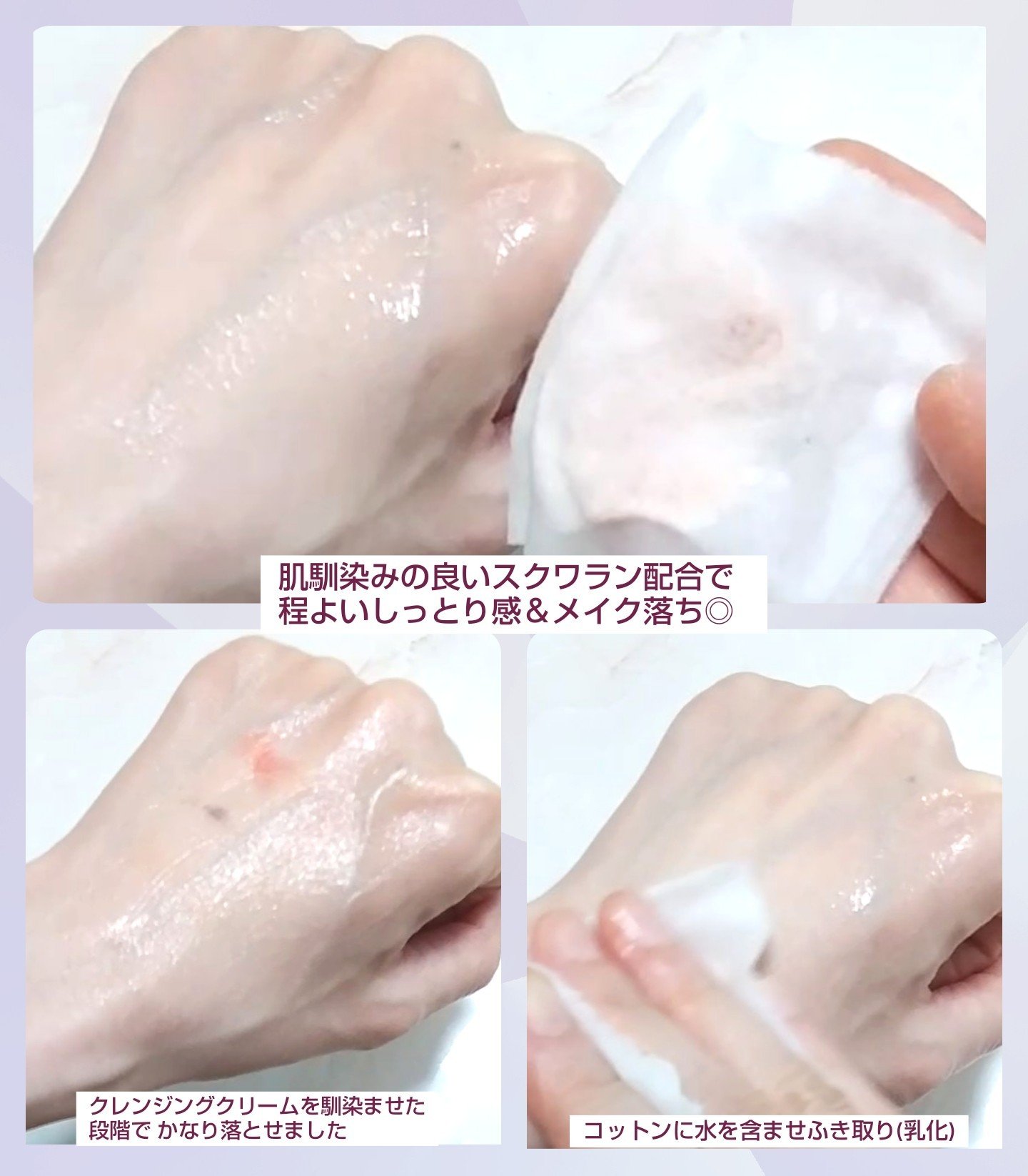 ウォータークレンジングというだけあって とろみが ないため、コットンに染み込ませると、一斉に広がる 印象です。 拭き取り後は、3種のヒアルロン酸配合※4だから 適度な潤いが感じられて肌が突っ張らないのも ポイント高かったです。 海洋深層水※2で肌を整える→簡単&時短スッキリ メイクオフ出来つつ肌に艶と潤いを与えてくれるから 健康な素肌の状態に戻れることで、スッピンに自信が 持てる素肌に近づけるかも🎵