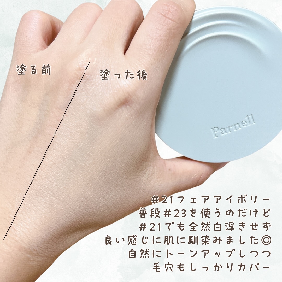 #PR⠀Parnell(パーネル)シカマヌセラムインマットクッション〈21フェアアイボリー〉 軽やかなつけ心地で、ふんわりセミマット印象✨普段からセミマットタイプをよく使う私にはとても心地よく感じた💚(※個人の感想)⠀カラー展開は19・21・...