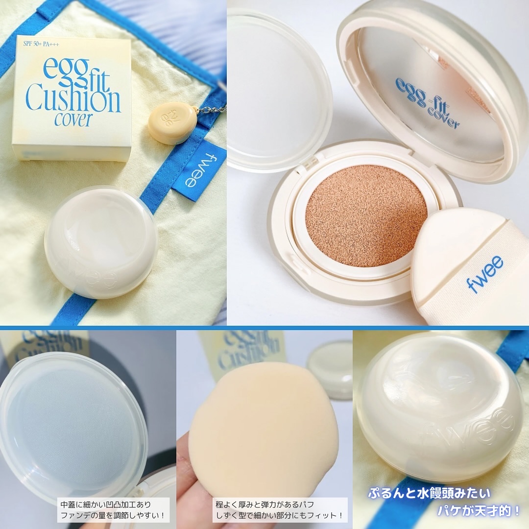 🤍fweeクッションエッグフィットカバー03ナチュラル出るアイテム全部かわいい❥fweeのコスメパケのかわいさも話題になったクッションファンデむき卵カバークッション《POINT》🥚シミや赤みをカバー※🥚セミマット仕上げ🥚毛穴や肌の凹凸をなめら...