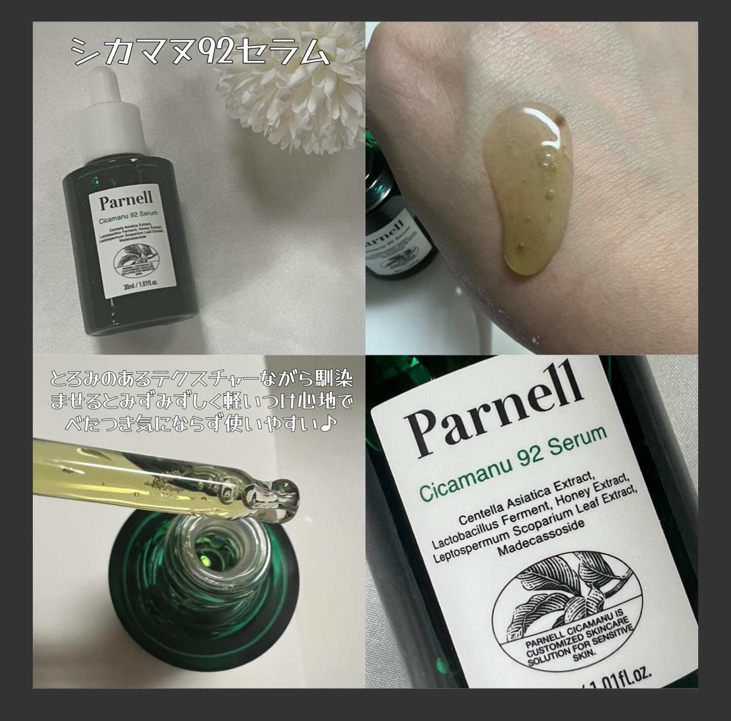 最近、肌のゆらぎ対策とメイクの仕上がりを底上げしたくて**Parnell(パーネル)**をライン使いしてみたよ🤍まずはシカマヌ92セラム。とろっとしてるのにスッと馴染んでベタつかなくて、肌がふわっと落ち着くのがわかる鎮静美容液。✔︎ニキビがで...