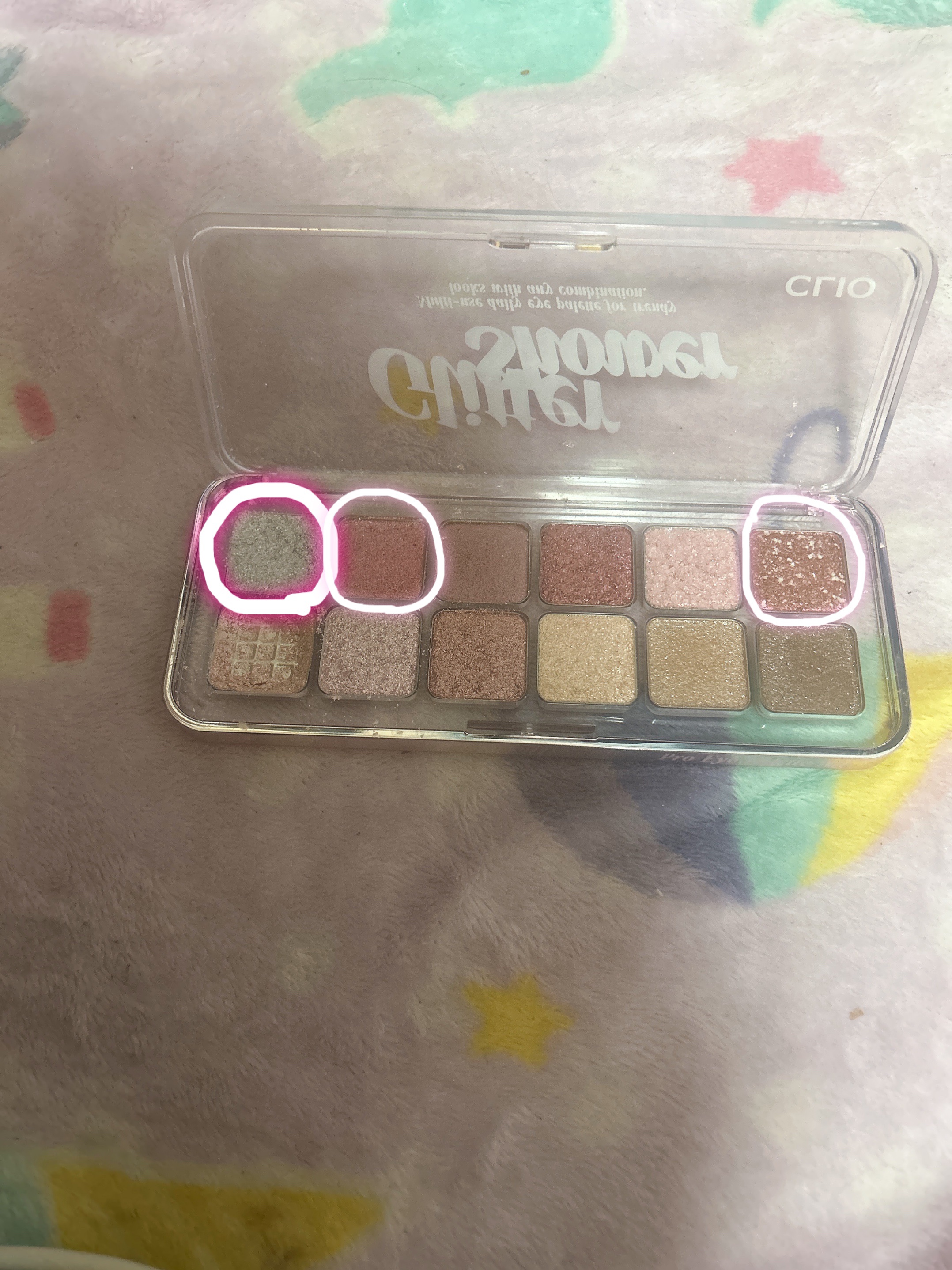 このアイシャドウキラキラしてて どんな化粧にと合いそう✨️ 色味は4枚目な感じ(*´ω`*)💕 4枚目に⭕️を付けているのはよく使うアイシャドウだよ( *´ω`* ) CLIOのアイシャドウ💄✨