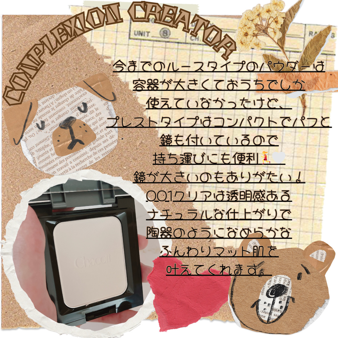 - チャコットを代表するフィニッシングパウダーから、お客さまのご要望が多かった「プレストタイプ」が新登場。 フィニッシングパウダーのくずれにくさ、テカリにくさのなど機能性はそのままに仕上がりにもこだわった「美肌仕上げ」のプレストパウダーとなっています。 パフの三分の一程度にパウダーをとり、気になる部分にのせます。 肌表面をすべらせるように馴染ませると磨かれたようななめらかな仕上がり*に。 使い方 パフの二分の一程度にパウダーをとり、気になる部分にのせます。 肌表面をすべらせるように馴染ませると磨かれたようななめらかな仕上がり*に。 *メイクアップ効果による