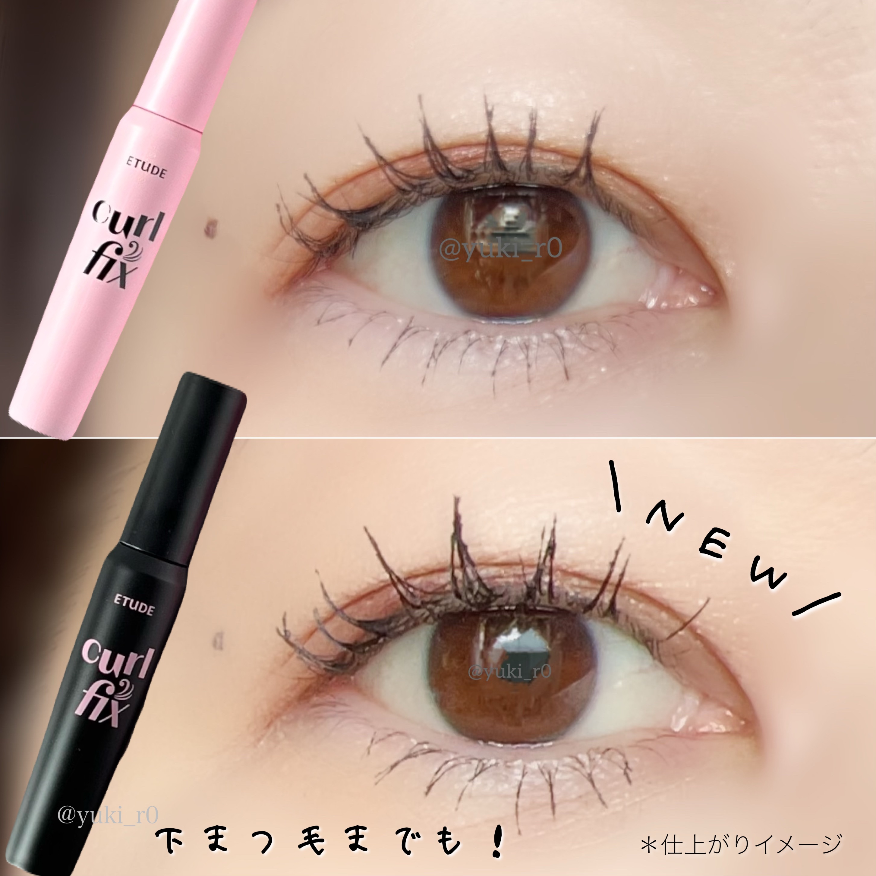 #エチュード の人気マスカラからボリュームタイプ登場🖤 既存のカールフィックスマスカラのブラシより細めで、四角にカッティングされ、目の曲線に沿ってカーブしたスクエアフィットブラシが特徴。 くっきりとしたクリアブラックで印象的なまつ毛を演出 細めのブラシなので、細かいことろにも使いやすくて、下まつ毛にも塗りやすいです。 まつ毛のカールを長時間キープしてくれる#マスカラ下地 カールキープ、ボリュームアップ、トップコートの1本3役👀