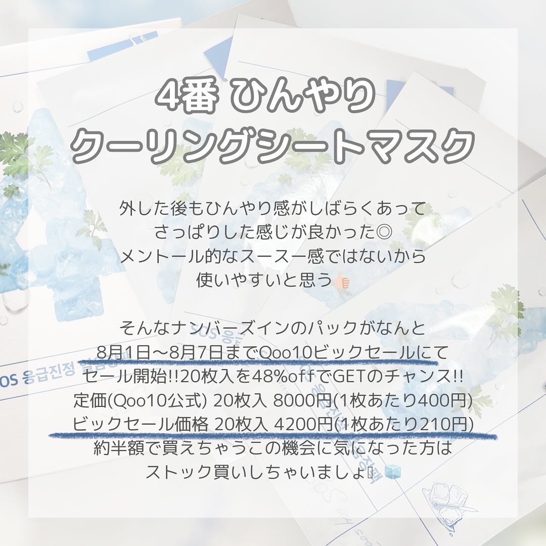 #numbuzin#4番#ひんやりクーリングシートマスク#ナンバーズイン#ナンバーズイン4番冷蔵庫から取り出したかのようなひやっとした#冷感で#ヨモギ入りの#シートがトラブル寸前のお肌をなだめる#鎮静#シートマスクまず開けた時に見たこともない...