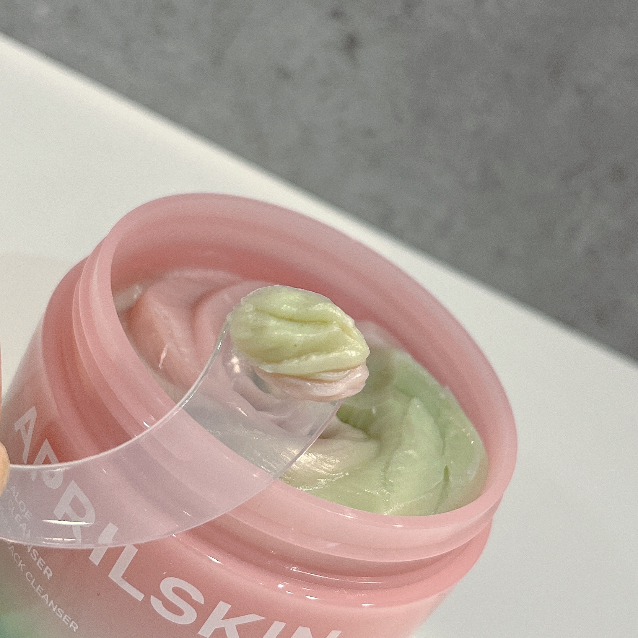 ピンクアロエメレンゲクレンザーはグリーンとピンクの可愛いクレンザーです💁♀️ ピンクアロエを丸ごと込めたよりしっとりしたメレンゲソープ♡ これ一つでクレンジングから鎮静ケア🙆♀️ 微細粉末スクラブ配合で刺激は少なく角質ケア✨ 国内産豆スクラブ、国内産緑豆スクラブ