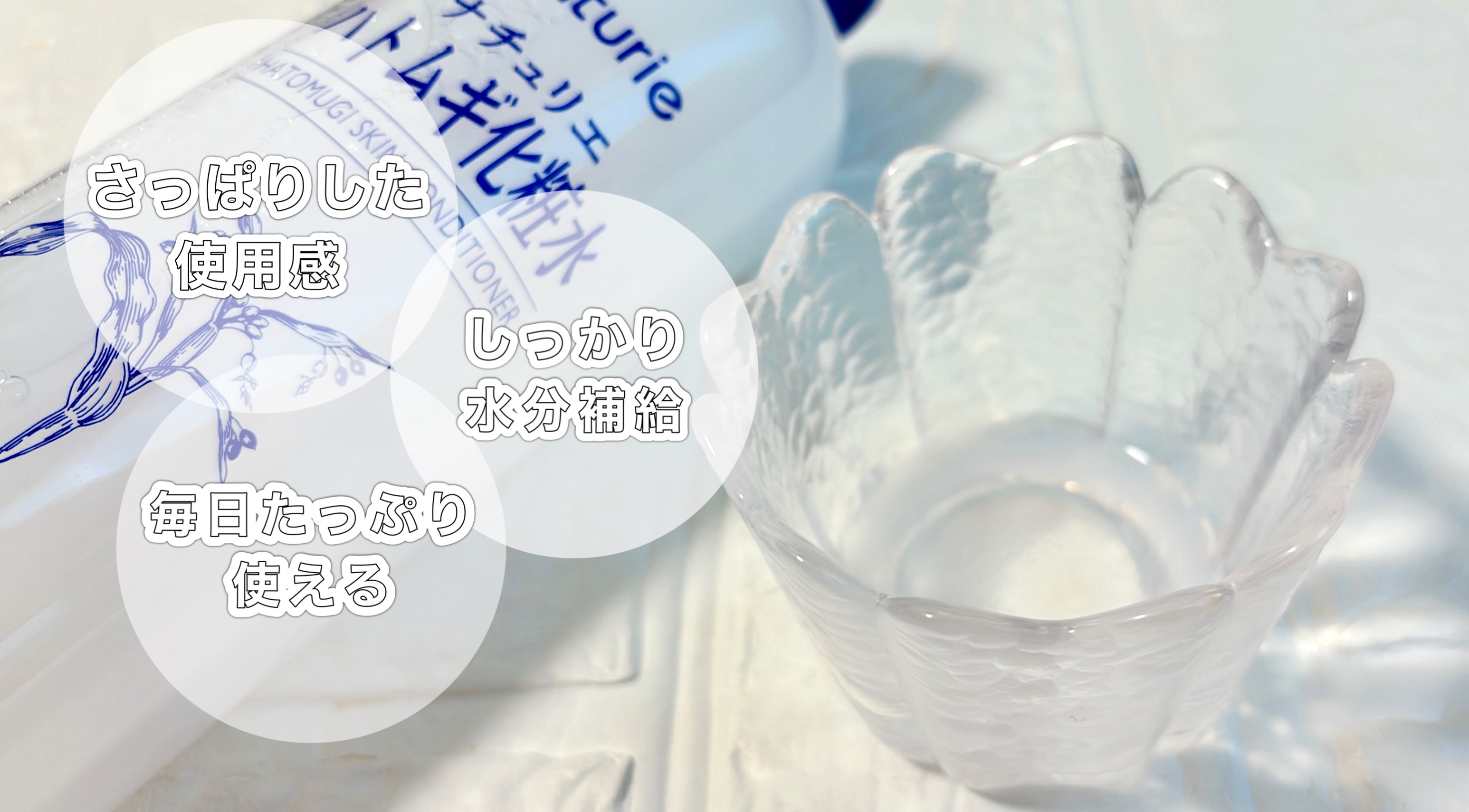 - 肌にうるおいを与えてスキンコンディションを整える、天然保湿成分ハトムギエキス配合の化粧水です。 みずみずしく浸透力に優れた処方なので、重ねるほどぐんぐん肌になじみ、角質層を水分で満たします。 たっぷり肌に重ねづけしてもべたつかないさっぱりした使用感なので、スキンケアのはじめにたっぷり使ってください。 肌がひんやりしてきたら十分に水分がなじんだサインです。 ■基本は化粧水として スキンケアのはじめにたっぷり使ってください。 500円玉大の量を3回重ねづけするのが目安です。 肌がひんやりしてきたら十分に水分がなじんだサインです。 ■ローションパックでさらにうるおい コットンやフェイスマスクにたっぷり含ませて約3分間パックすると、角質水分量がさらに高まります。 ■プレ化粧水として 洗顔後すぐにつけることで、その後につけるスキンケアのなじみをよくします。※角質層まで ■ボディにも べたつかないので、毎日の入浴後や日差しを浴びた後などのボディのスキンケアにもおすすめです。