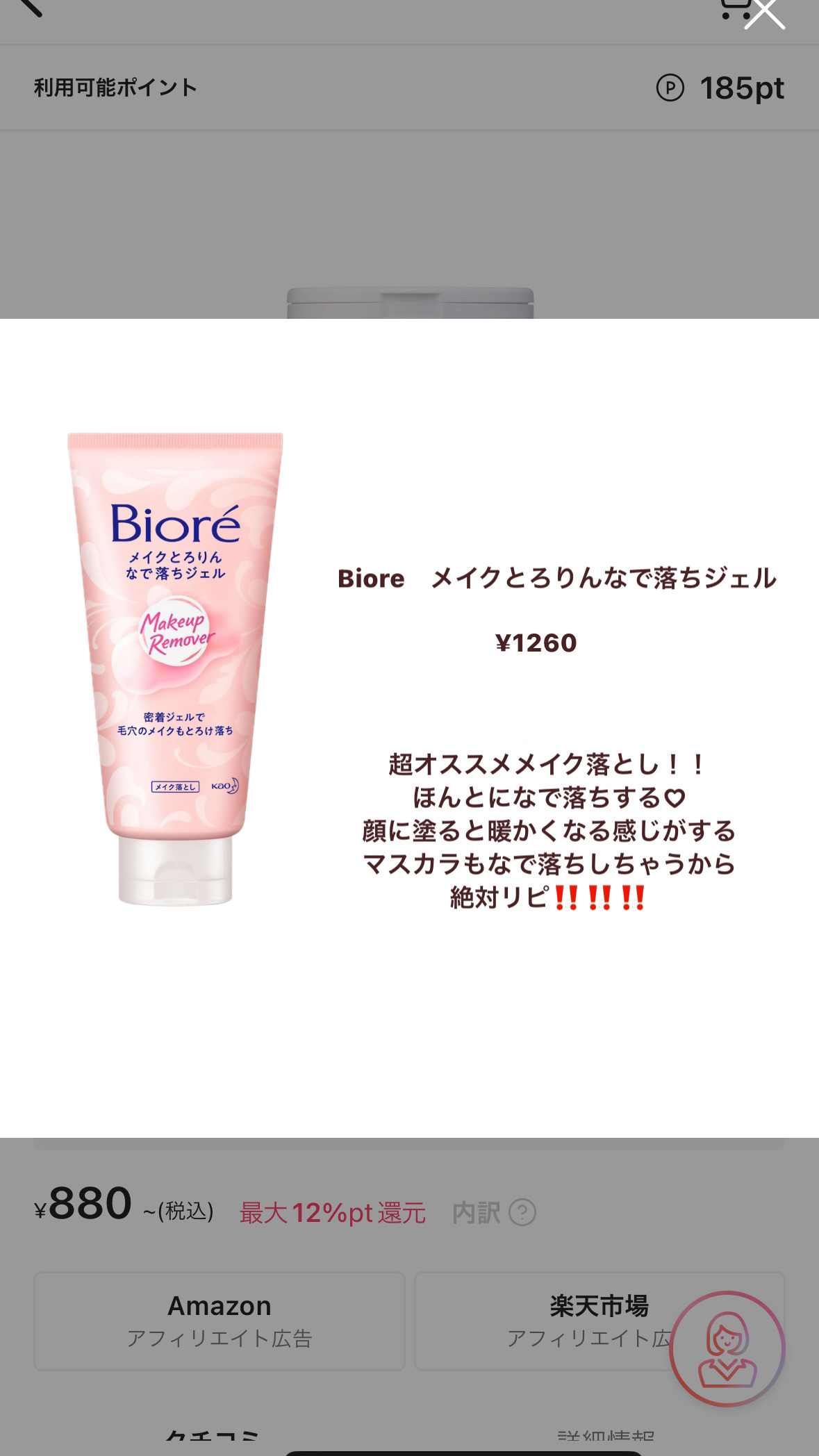 | クレンジングランキング第44位 | あっという間に溶けてオイルとクリームの中間みたいになります。溶け残りしづらい👍️ | 詳細を見る |
