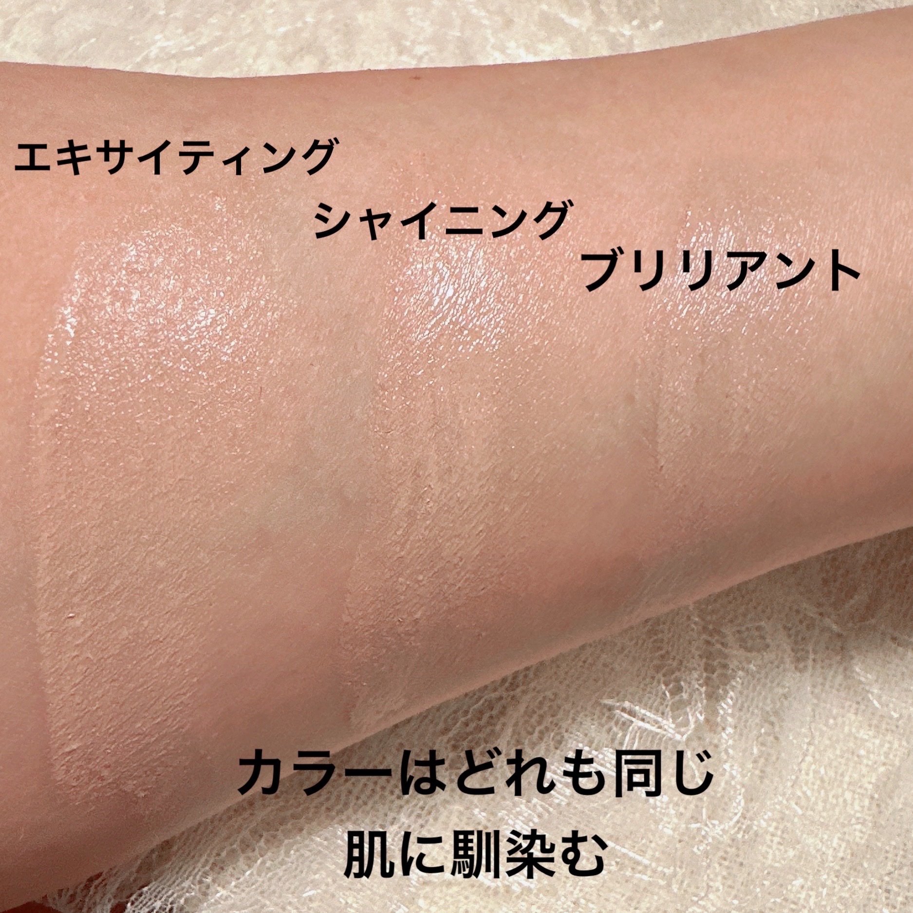 キラキラチラチラッと艶めくパール配合のスティックタイプのチーク✨ ハイライト的に使うと濡れたようなツヤが、仕込みチークにすると内側からジュワッと血色感が出るような仕上がりに☝️ バーム状チークなので、のせてしばらくはしっとりしているため、マスクなどをする場合は、上からパウダーを重ねてもいいかも◎