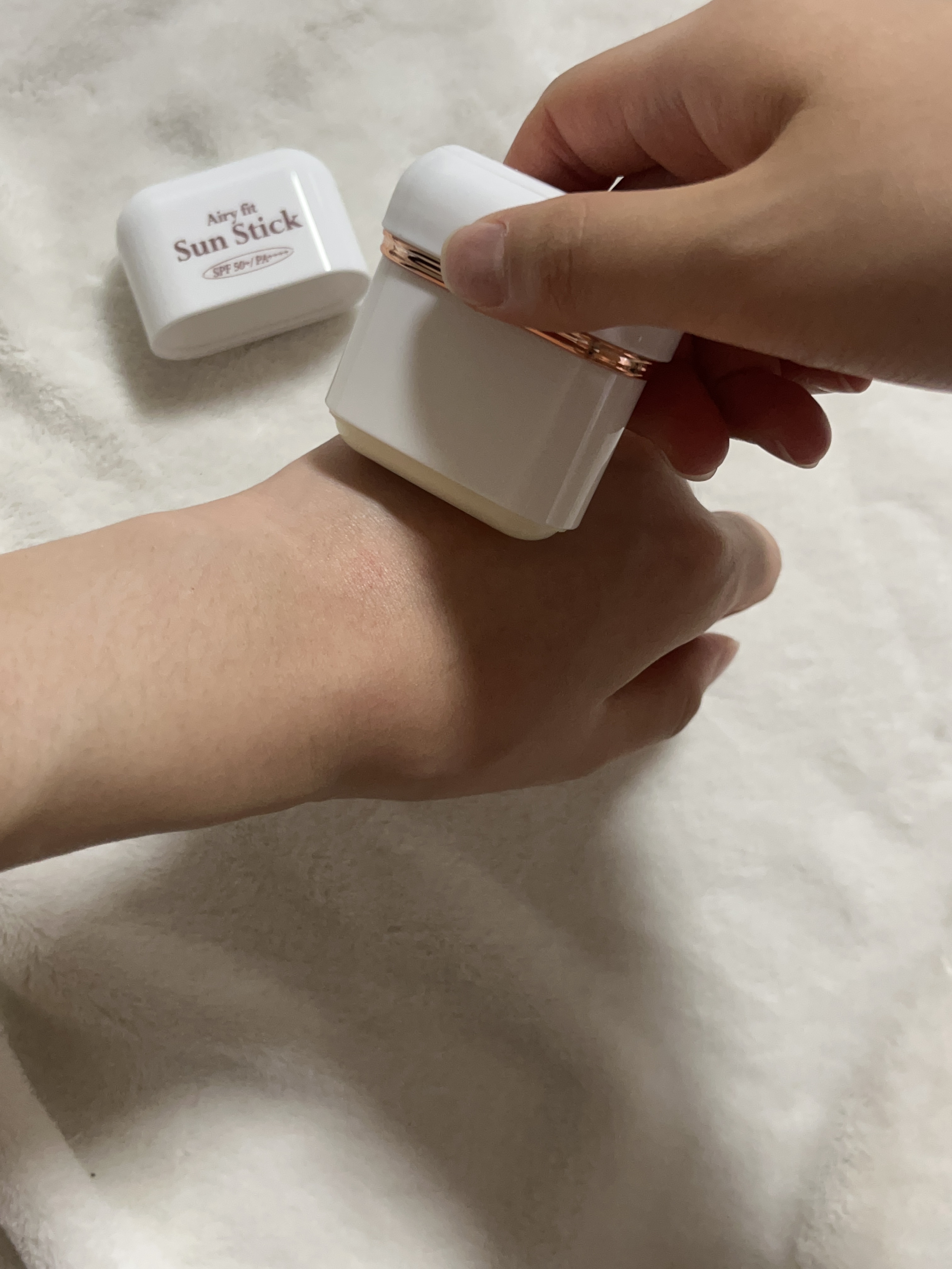- ベタつきやテカりがなく、サラッとしたエアリーなテクスチャー。 手を汚さずに直接塗れて、メイクの上から塗り直しが可能です。 水や汗はもちろん、砂がついてもサラサラだから、レジャーシーンでも大活躍すること間違いなし。 空気のような軽さで密着し、べたつかずサラサラの肌に。 独自開発のウォーターブースティング技術を採用、長時間UVケアを叶える日焼け止めスティック。 #エアリーフィット #持ち運びサイズ #いつでもどこでも #メイクの上にもさらっと密着 ☑SPF50+、PA++++ ☑3種のプルーフ: ①水に強いウォータープルーフ ②サラサラで砂が付きにくいサンドプルーフ ③汗や皮脂で落ちにくいスウェットプルーフ ☑2つの独自開発技術採用 ①ウォーターブースティング技術:汗や水分に反応してSPF効果が高まり、UVケア効果が長持ち。 ②ポリメリックハイテンパー技術:高い気温の中でも、長時間SPF効果を維持します。 ☑さらさら肌を演出: べたつかず肌のテカりを押さえ、重ね塗りをしても肌に負担のない軽い使用感。 パウダーを塗ったようなサラサラ肌に。 ☑いつでもどこでも持ち運びサイズ: 特定のイヤホンケースにぴったりはまるサイズ感。ケースに入れてキーホルダーにように持ち歩いても◎