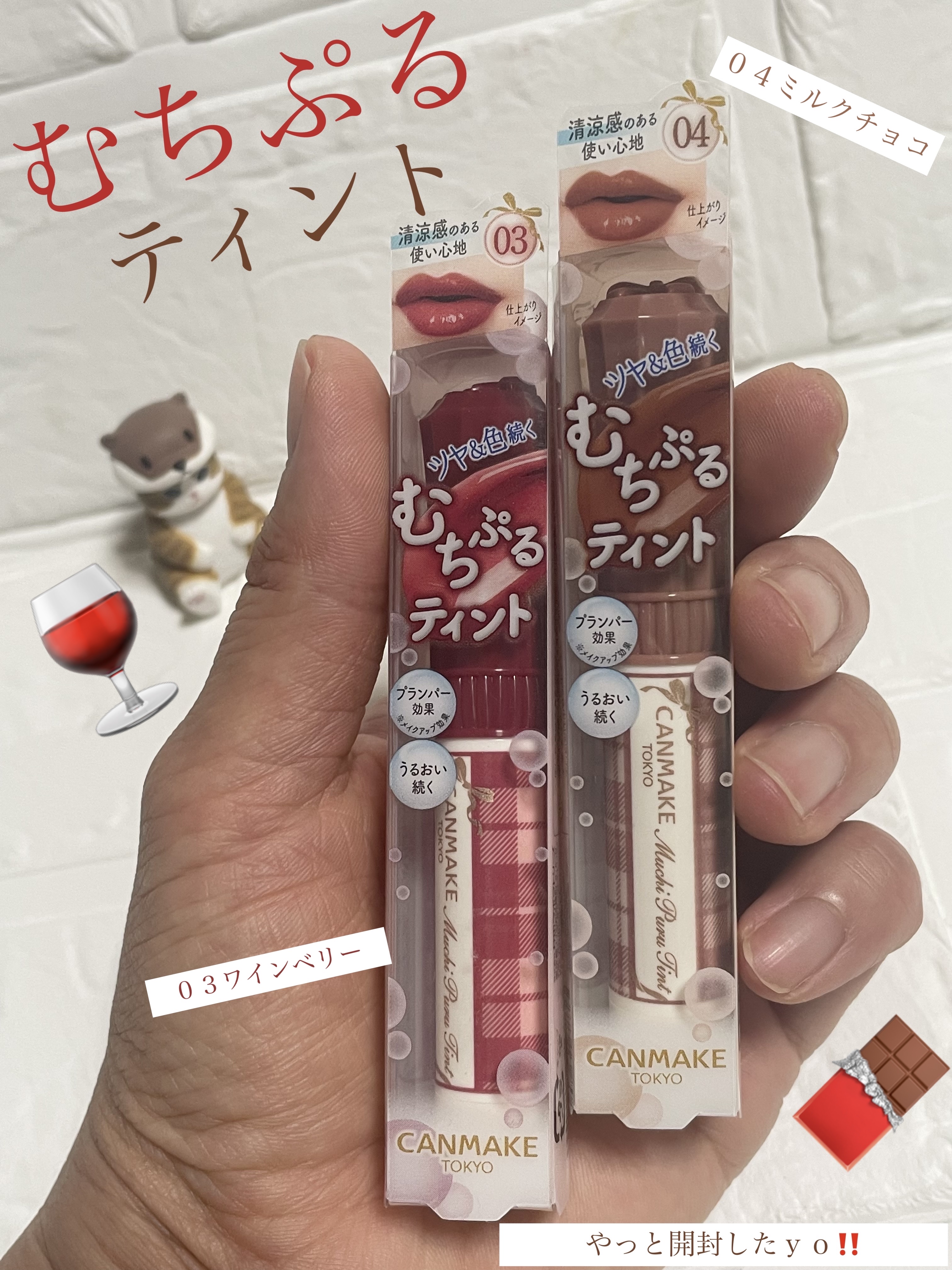 艶々ぷるぷる唇を叶える「キャンメイク」のティント♡ パケもカラバリも可愛すぎて、気づいたら全色持ってた…🤭 高発色なんだけどもほんのり透け感があるからササッと塗りやすい◎ イエベ春で明るめカラーが好きな私は、02 モモ と05 フィグピューレが特にお気に入り!