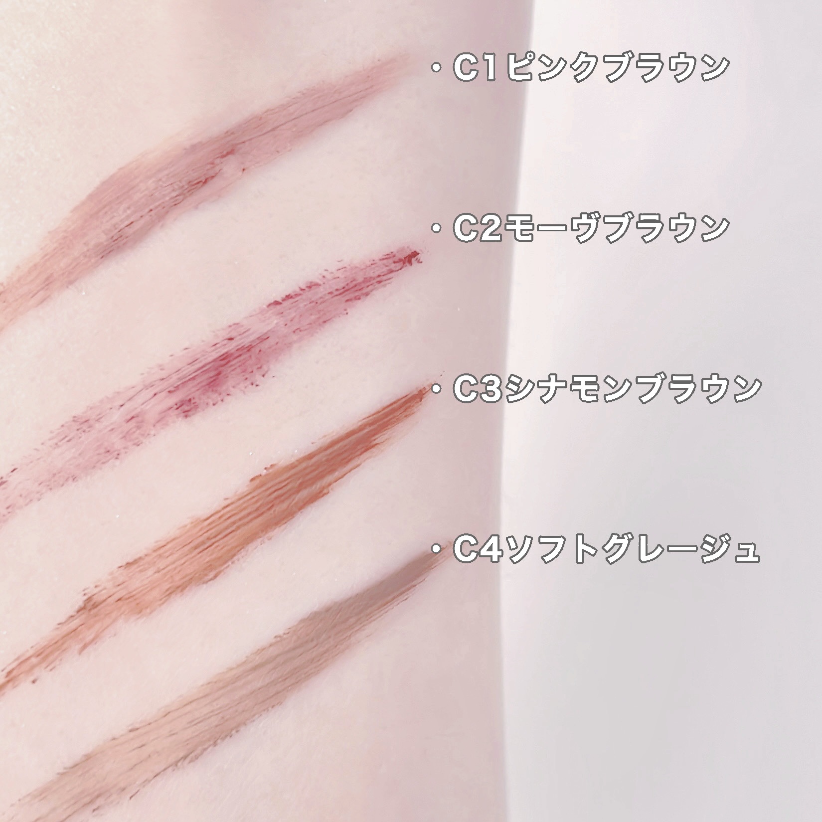 抜け感眉が叶う、CEZANNEの極細アイブロウマスカラ!全色レビュー✨◻️CEZANNE極細アイブロウマスカラC1ピンクブラウンC2モーヴブラウンC3シナモンブラウンC4ソフトグレージュ各¥528(税込)お気に入りで全色揃えたCEZANNEの...