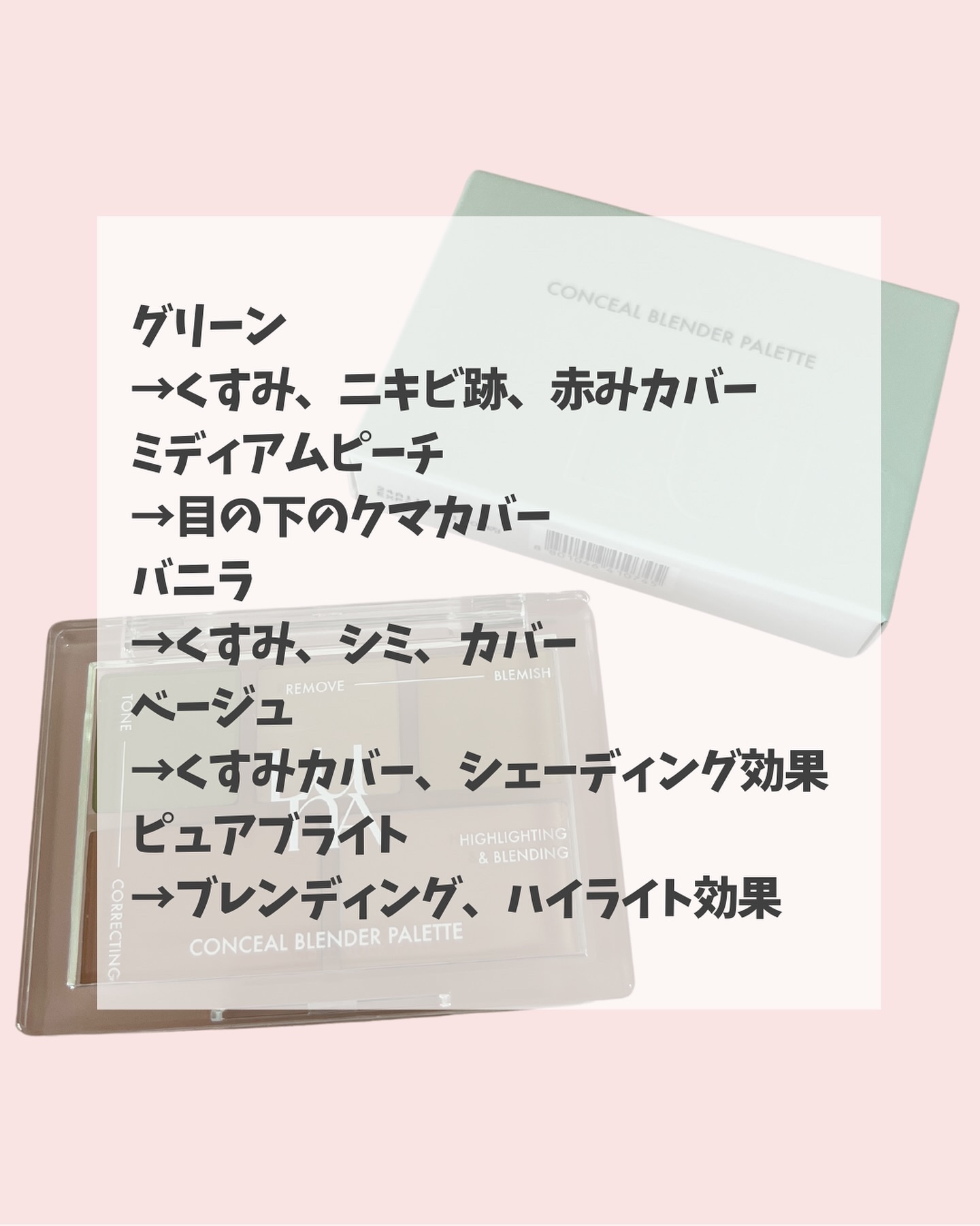 一つのパレットでカバーからカラーコントロールまで! 色んな肌悩みにアプローチする5色のカラーでコスパ最強のコンシーラーパレット⟡ 01クリアカバーは色ムラや赤みをカバーし血色感のある透明美肌に◞❤︎ 厚塗り感無くしっかりカバーしてくれるのがお気に入り🎶