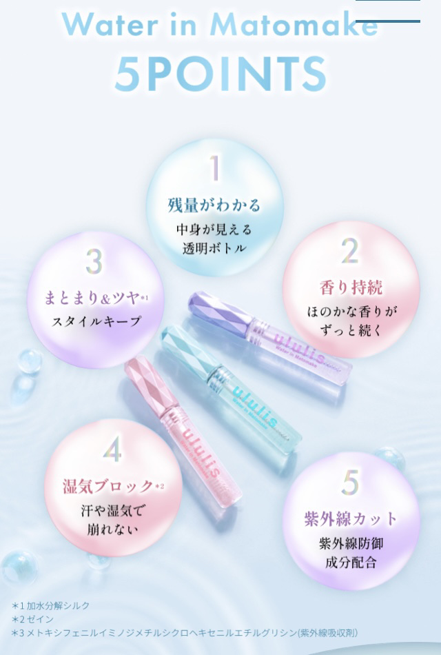 :::*:::*:::*:::*:::*:::*:::*:::*ululisウォーターインマトメイク ピンク¥1,078昔はストレートヘアーだったのに最近汗かくとはねたりうねったりする様になったから、これ買ってみた!<スーパーホールドタイプ>...