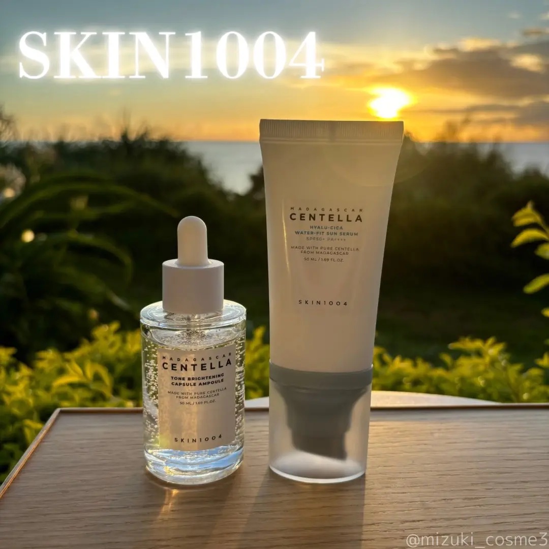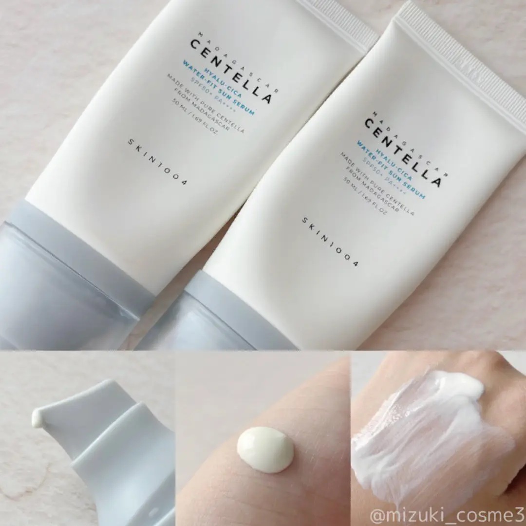 SKIN1004ヒアルーシカウォーターフィットサンセラムSPF50+PA++++大大大好きな日焼け止め🤩🩷日焼け止め特有のキシみや匂いもすくなくてセラムのようなつけ心地でベタつかずに白浮きもしにくいよ!!ヒアルロン酸Naとツボクサエキス*(*...