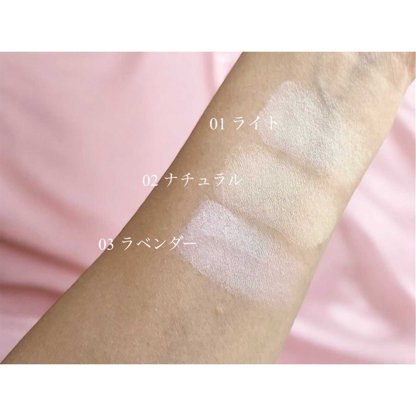 - <01 ライト> タルク、マイカ、トリ(カプリル酸/カプリン酸)グリセリル、窒化ホウ素、シリカ、ジメチコン、ナイロンー12、メタクリル酸メチルクロスポリマー、合成ミツロウ、リンゴ酸ジイソステアリル、カプリル酸グリセリル、エチルヘキシルグリセリン、ステアリン酸ジメチコノール、水、酢酸トコフェロール、ダイヤモンド末、ハスエキス、BG、1,2ーヘキサンジオール、ペンチレングリコール、ヒアルロン酸Na、モモ果実エキス、ヒドロキシアセトフェノン、フェノキシエタノール、アセチルヒアルロン酸N a、加水分解ヒアルロン酸、加水分解ヒアルロン酸Na、ヒアルロン酸、酸化鉄、酸化チタン、香料 <02 ナチュラル> タルク、マイカ、トリ(カプリル酸/カプリン酸)グリセリル、窒化ホウ素、シリカ、ジメチコン、ナイロンー12、メタクリル酸メチルクロスポリマー、合成ミツロウ、リンゴ酸ジイソステアリル、カプリル酸グリセリル、エチルヘキシルグリセリン、ステアリン酸ジメチコノール、水、酢酸トコフェロール、ダイヤモンド末、ハスエキス、BG、1,2ーヘキサンジオール、ペンチレングリコール、ヒアルロン酸Na、モモ果実エキス、ヒドロキシアセトフェノン、フェノキシエタノール、アセチルヒアルロン酸N a、加水分解ヒアルロン酸、加水分解ヒアルロン酸N a、ヒアルロン酸、酸化鉄、酸化チタン、香料 <03 ラベンダー> タルク、マイカ、トリ(カプリル酸/カプリン酸)グリセリル、窒化ホウ素、シリカ、ジメチコン、ナイロンー12、メタクリル酸メチルクロスポリマー、合成フルオロフロゴパイト、合成ミツロウ、リンゴ酸ジイソステアリル、カプリル酸グリセリル、エチルヘキシルグリセリン、ステアリン酸ジメチコノール、酢酸トコフェロール、ダイヤモンド末、水、ハスエキス、BG、ローブッシュブルーベリー果実エキス、クマイチゴ果実エキス、マグワ果実エキス、1,2ーヘキサンジオール、ペンチレングリコール、ヒアルロン酸Na、ヒドロキシアセトフェノン、フェノキシエタノール、アセチルヒアルロン酸N a、加水分解ヒアルロン酸、加水分解ヒアルロン酸Na、ヒアルロン酸、酸化チタン、グンジョウ、赤201、香料