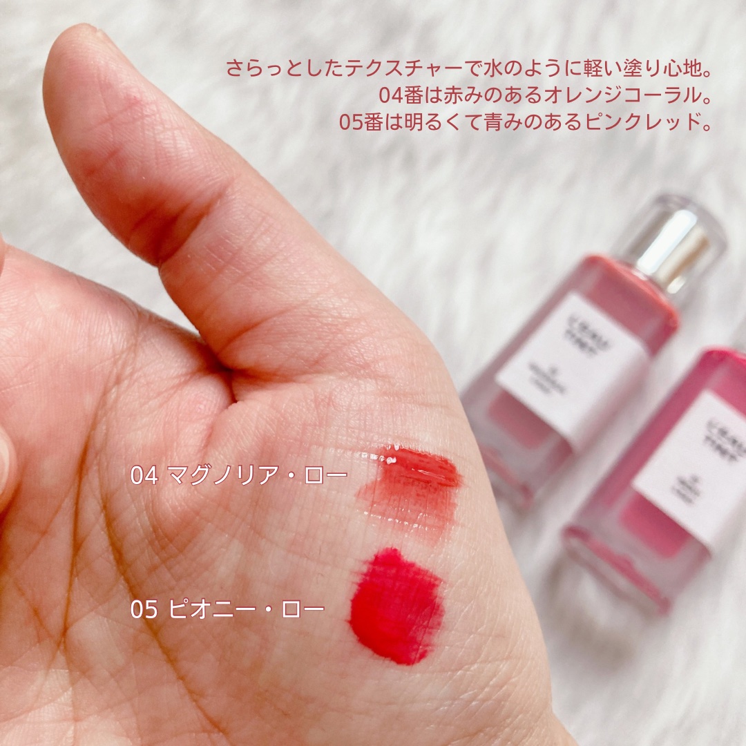- <01 ガーデニア・ロー> 水、ジフェニルジメチコン、ビスジグリセリルポリアシルアジペート-2、リンゴ酸ジイソステアリル、グリセリン、DPG、セチルPEG/PPG-10/1ジメチコン、1,2-ヘキサンジオール、ポリソルベート60、イソステアリン酸ソルビタン、(アクリル酸ヒドロキシエチル/アクリロイルジメチルタウリンNa)コポリマー、セテアレス-20、スクワラン、酸化チタン、黄5、香料、エチルヘキシルグリセリン、赤227、青1、BG、ヤマザクラ花エキス、モクレン花エキス、ハス花エキス、ダマスクバラ花エキス、クエン酸Na、テトラ(ジ-t-ブチルヒドロキシヒドロケイヒ酸)ペンタエリスリチル、クエン酸、フェノキシエタノール <02 フルール・ロー> 水、ジフェニルジメチコン、ビスジグリセリルポリアシルアジペート-2、リンゴ酸ジイソステアリル、グリセリン、DPG、セチルPEG/PPG-10/1ジメチコン、1,2-ヘキサンジオール、ポリソルベート60、イソステアリン酸ソルビタン、(アクリル酸ヒドロキシエチル/アクリロイルジメチルタウリンNa)コポリマー、セテアレス-20、スクワラン、酸化チタン、香料、エチルヘキシルグリセリン、赤227、黄4、黄5、赤104(1)、青1、BG、ヤマザクラ花エキス、モクレン花エキス、ハス花エキス、ダマスクバラ花エキス、クエン酸Na、テトラ(ジ-t-ブチルヒドロキシヒドロケイヒ酸)ペンタエリスリチル、クエン酸、フェノキシエタノール <03 ライラック・ロー> 水、ジフェニルジメチコン、ビスジグリセリルポリアシルアジペート-2、リンゴ酸ジイソステアリル、グリセリン、DPG、セチルPEG/PPG-10/1ジメチコン、1,2-ヘキサンジオール、ポリソルベート60、イソステアリン酸ソルビタン、(アクリル酸ヒドロキシエチル/アクリロイルジメチルタウリンNa)コポリマー、セテアレス-20、スクワラン、酸化チタン、香料、エチルヘキシルグリセリン、赤227、黄5、青1、BG、ヤマザクラ花エキス、モクレン花エキス、ハス花エキス、ダマスクバラ花エキス、クエン酸Na、テトラ(ジ-t-ブチルヒドロキシヒドロケイヒ酸)ペンタエリスリチル、クエン酸、フェノキシエタノール <04 マグノリア・ロー> 水、ジフェニルジメチコン、ビスジグリセリルポリアシルアジペート-2、リンゴ酸ジイソステアリル、グリセリン、DPG、セチルPEG/PPG-10/1ジメチコン、1,2-ヘキサンジオール、ポリソルベート60、イソステアリン酸ソルビタン、(アクリル酸ヒドロキシエチル/アクリロイルジメチルタウリンNa)コポリマー、セテアレス-20、スクワラン、酸化チタン、香料、エチルヘキシルグリセリン、赤227、黄4、黄5、青1、BG、ヤマザクラ花エキス、モクレン花エキス、ハス花エキス、ダマスクバラ花エキス、クエン酸Na、テトラ(ジ-t-ブチルヒドロキシヒドロケイヒ酸)ペンタエリスリチル、クエン酸、フェノキシエタノール <05 ピオニー・ロー> 水、ジフェニルジメチコン、ビスジグリセリルポリアシルアジペート-2、リンゴ酸ジイソステアリル、グリセリン、DPG、セチルPEG/PPG-10/1ジメチコン、1,2-ヘキサンジオール、ポリソルベート60、イソステアリン酸ソルビタン、(アクリル酸ヒドロキシエチル/アクリロイルジメチルタウリンNa)コポリマー、セテアレス-20、スクワラン、香料、エチルヘキシルグリセリン、黄5、赤227、赤104(1)、BG、ヤマザクラ花エキス、モクレン花エキス、ハス花エキス、ダマスクバラ花エキス、クエン酸Na、テトラ(ジ-t-ブチルヒドロキシヒドロケイヒ酸)ペンタエリスリチル、クエン酸、フェノキシエタノール <06 ピンク・ロー> 水、ジフェニルジメチコン、ビスジグリセリルポリアシルアジペート-2、リンゴ酸ジイソステアリル、グリセリン、DPG、セチルPEG/PPG-10/1ジメチコン、1,2-ヘキサンジオール、ポリソルベート60、イソステアリン酸ソルビタン、(アクリル酸ヒドロキシエチル/アクリロイルジメチルタウリンNa)コポリマー、セテアレス-20、スクワラン、酸化チタン、香料、エチルヘキシルグリセリン、黄5、赤104(1)、赤227、青1、BG、ヤマザクラ花エキス、モクレン花エキス、ハス花エキス、ダマスクバラ花エキス、クエン酸Na、テトラ(ジ-t-ブチルヒドロキシヒドロケイヒ酸)ペンタエリスリチル、クエン酸、フェノキシエタノール <07 ピーチ・ロー> 水、ジフェニルジメチコン、ビスジグリセリルポリアシルアジペート-2、リンゴ酸ジイソステアリル、グリセリン、DPG、セチルPEG/PPG-10/1ジメチコン、1,2-ヘキサンジオール、ポリソルベート60、イソステアリン酸ソルビタン、(アクリル酸ヒドロキシエチル/アクリロイルジメチルタウリンNa)コポリマー、セテアレス-20、スクワラン、酸化チタン、香料、エチルヘキシルグリセリン、黄4、赤227、黄5、赤104(1)、BG、ヤマザクラ花エキス、モクレン花エキス、ハス花エキス、ダマスクバラ花エキス、クエン酸Na、テトラ(ジ-t-ブチルヒドロキシヒドロケイヒ酸)ペンタエリスリチル、クエン酸、フェノキシエタノール <08 スイート・ロー> 水、ジフェニルジメチコン、ビスジグリセリルポリアシルアジペート-2、リンゴ酸ジイソステア