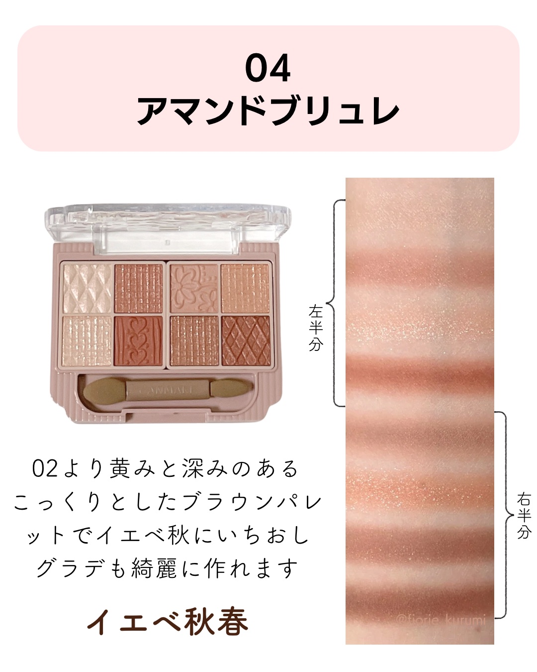キャンメイクのプティパレットアイズを全色スウォッチしました🙌🏻 イエベ春(2nd夏)さんにおすすめ ✔︎01プリュムフラワー ✔︎M03 ミルキーチェリコッタ(ニュートラル) ブルベ冬さんにおすすめ ✔︎03 ミニョンヌリボン(濃い色を使う) ✔︎M02 ロマンティックフォグ