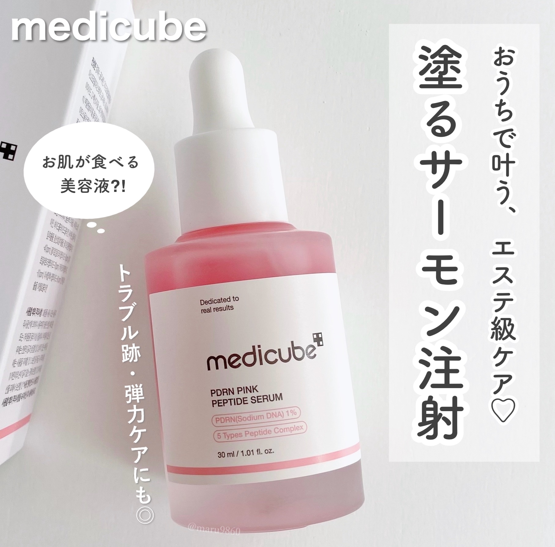 medicubeメディキューブのPDRNピンクペプチドアンプル🩷おうちでも高級エステ級のケアができる美容液!塗るサーモン注射で話題だよね🫧人のDNAに最も近いと言われているサーモンPDRNはコラーゲン合成をサポートしてくれて、鎮静、肌バリア補...