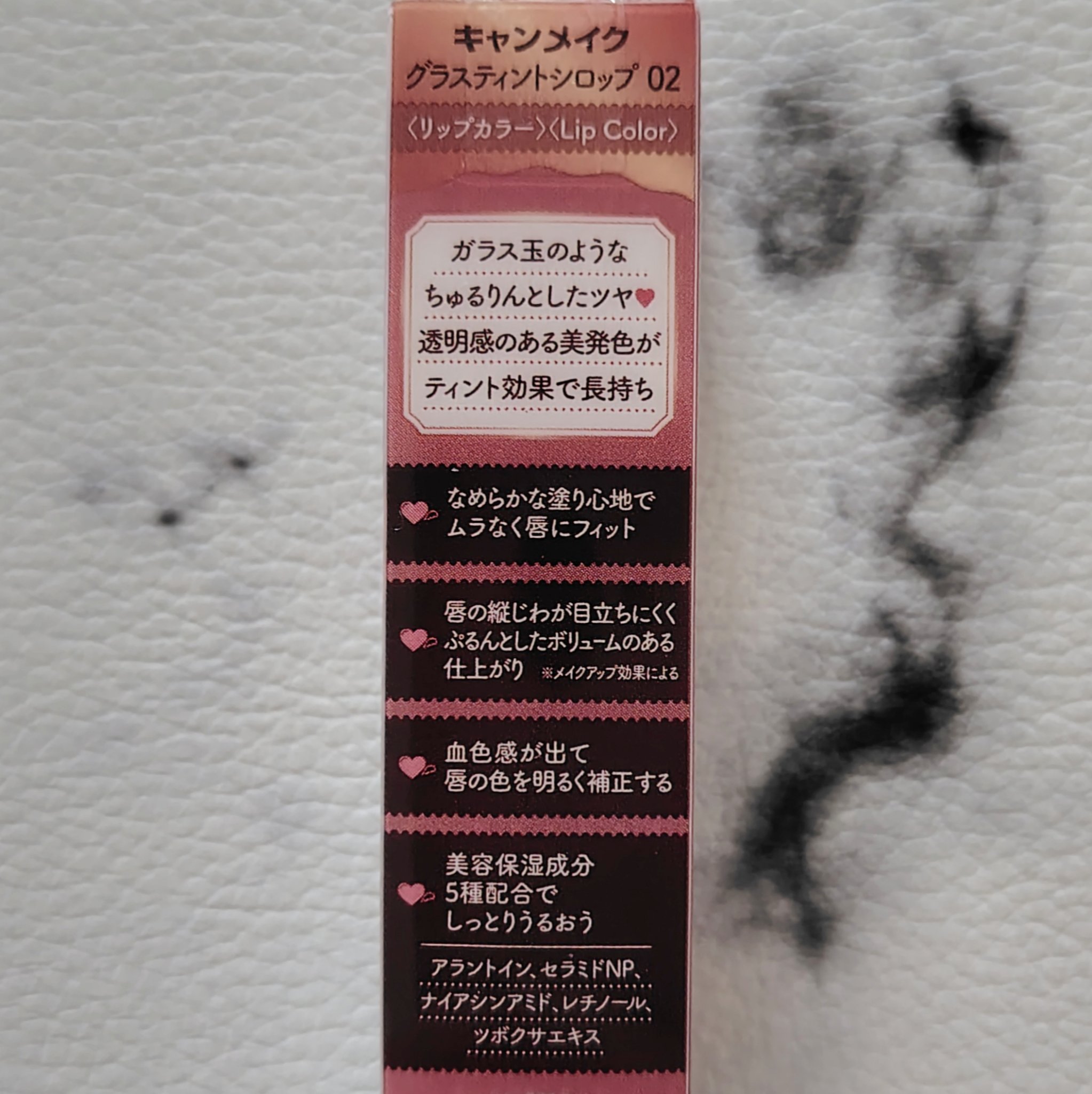 - ちゅるりんツヤ×シアー✨ ガラス玉みたいなティントリップ ガラス玉のようなちゅるりんとしたツヤ🫧 透明感のある美発色がティント効果で長持ち 「色持ちもシアー感も両方叶えたい!」そんな方にオススメ♡ なめらかな塗り心地でムラなく唇にフィット💋 唇の縦じわが目立ちにくく、ぷるんとしたボリュームのある仕上がりです。 ※メイクアップ効果による 美容保湿成分5種配合。 (アラントイン、セラミドNP、ナイアシンアミド、レチノール、ツボクサエキス) しっとりとしたうるおいが持続します。