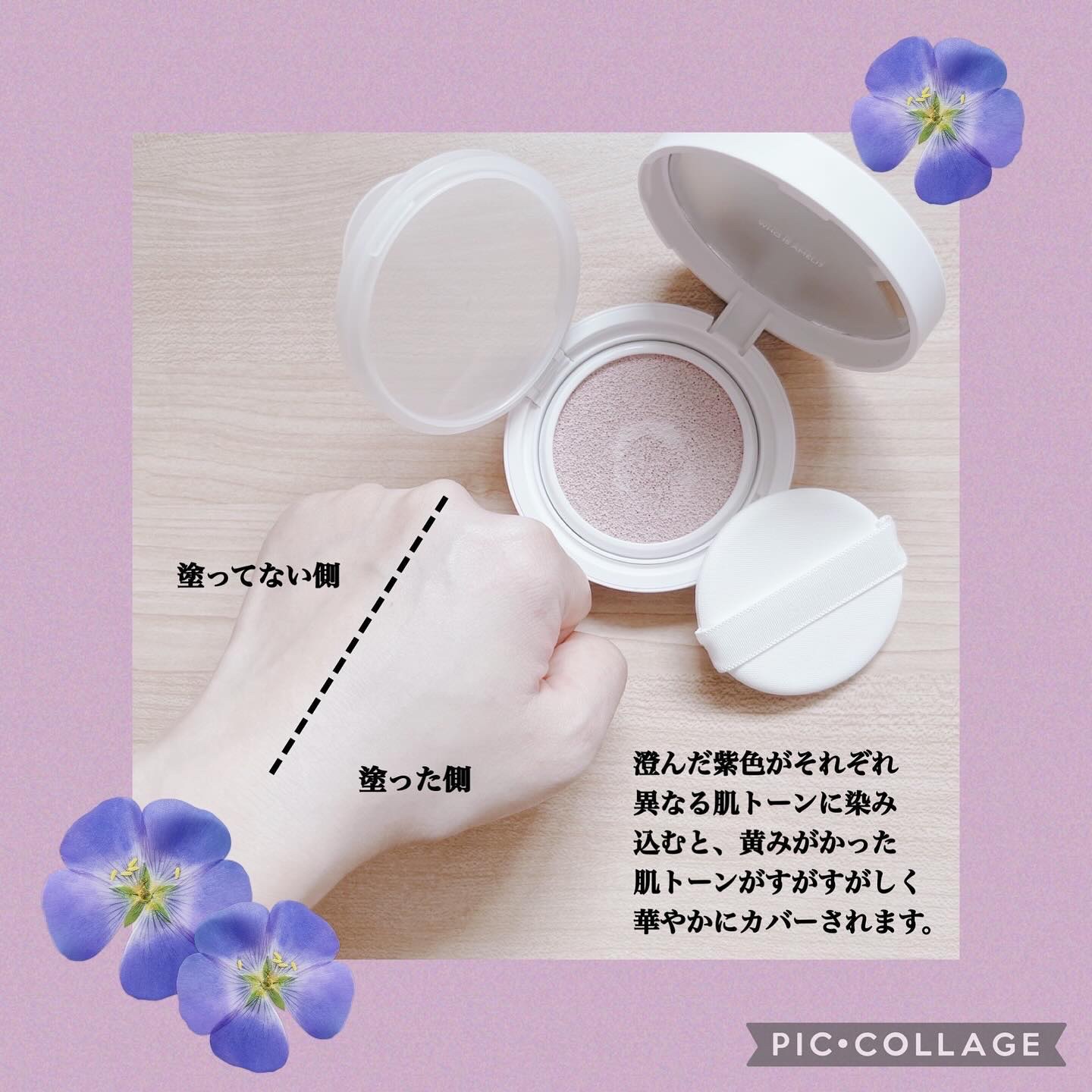 透明な紫色を肌に薄く伸ばすことで黄色いスキントーンが華やかに補完する くすみを飛ばして自然にトーンアップしつつ毛穴も綺麗にカバーしてくれます! 伸びも肌馴染みも良くて崩れにくくなるので、化粧下地として使ってます!