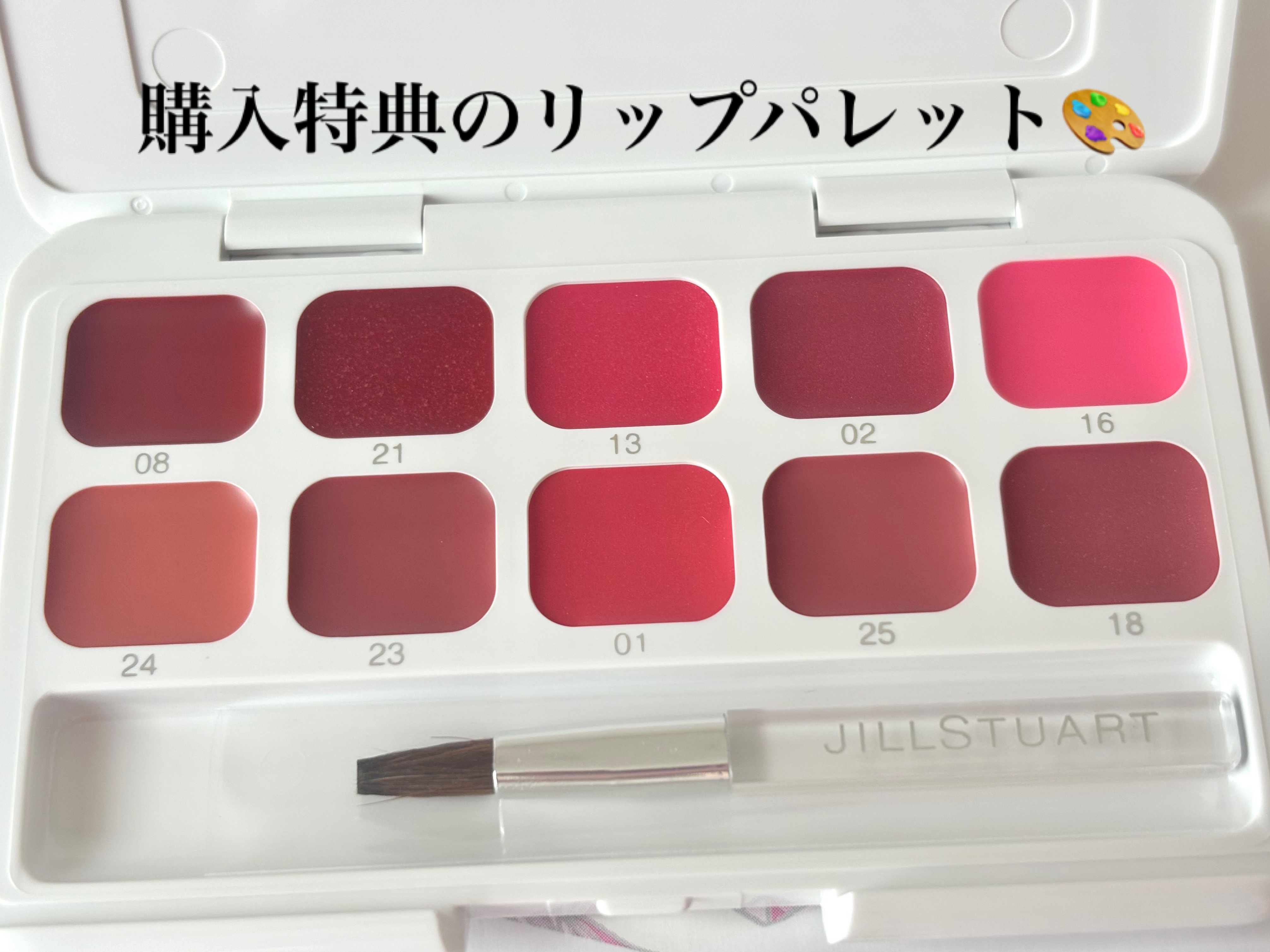 シアーな発色の血色ブラウンという感じでかなり使いやすかったので失敗しづらく、挑戦しやすいブラウンカラーだと感じました! リニューアル後はかなり軽い付け心地になっていて、乾燥もしづらい気がしました! すごく可愛いリップパレットも特典でついてきたので、これで他の色もじっくり試してみようと思います〜