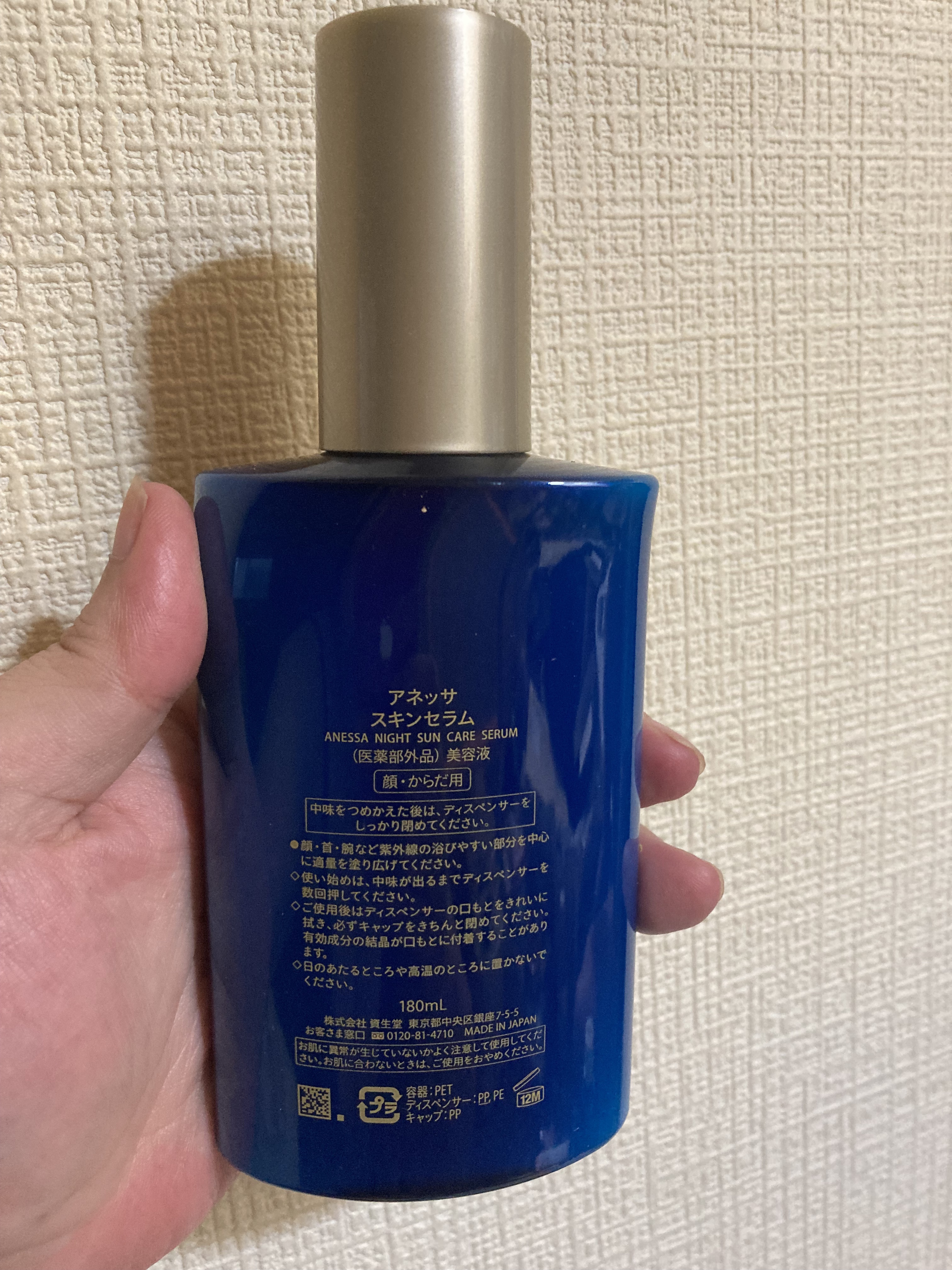 - 【医薬部外品】紫外線ダメージが気になる日の夜に、これ1本でうるおいながら全身の美白※1ケア&シワ改善薬用 ナイトサンケア美容液 ※1 美白とは、メラニンの生成を抑えシミ・そばかすを防ぐこと 紫外線ダメージが気になる肌に就寝中のうるおいケア。美白ケア※1&シワ改善まで。 たっぷりのうるおいで肌の天然バリア膜(角層)を整え、明るく透明感のある肌に導く。 1本で顔・首・腕など全身に使える薬用オールインワン美容液。 ○美白※1&シワ改善有効成分-ナイアシンアミド ○肌あれ防止有効成分-グリチルリチン酸塩 ○うるおいバリア成分-D-グルタミン酸 ○保湿成分:アロエベラエキス、明日葉エキス、緑茶エキス、トルメンチラエキス、グリセリン ○長時間保湿持続効果 ○さらっとした使用感でべたつかない ○すっとなじむ美容液 ○清々しいハーバルグリーン&ラベンダーの心地よい香り ○つめかえ可能なレフィル仕様 ○責任ある木質資源を使用したFSC®認証紙パッケージ ■使用法 ◆洗顔後やお風呂上がりに、お使いください。 ◆顔・首・腕など紫外線の浴びやすい部分を中心に適量を塗り広げてください。 ◆化粧水・乳液・美容液の機能を兼ね備えたオールインワン美容液であるため、これ1本でスキンケアを完了させることができます。お手持ちのスキンケアと合わせてお使いになる場合は、化粧水の後の使用をおすすめします。 ◆「冷やしアネッサ」:冷蔵庫で冷やしてお使いいただくことで清涼感もアップし清々しい使い心地を楽しんでいただくことができます。