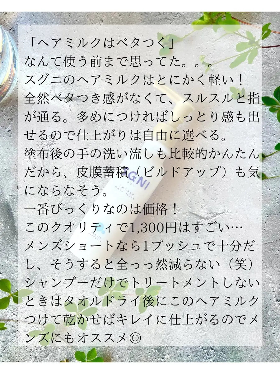 ブリーチ髪×ダメージ×くせっ毛のわたしはスグニのヘアミルク🐮を全力で推します✌️ ダメージ毛〜ヘアミルク難民の人は必見ー! 軽さが売り!ベタつきゼロ!の浸透保水ヘアミルク ヘアオイルと併用◎ 無香料だからシャントリの香りの邪魔しない◎ なんと言っても次の日朝起きたらサラサラ髪×寝癖がない状態だったのがびっくり!