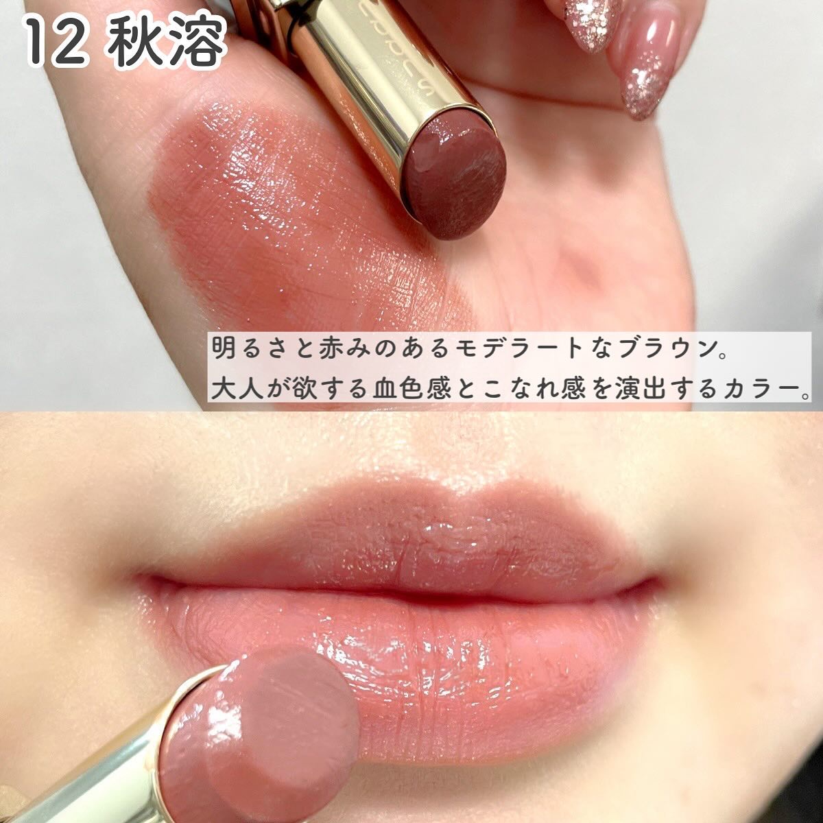 - にじむような色付き、ひと塗りであふれ出す艶。濃密な艶膜で唇を“グレイズ”する新リップ誕生。 〈じゅわっととろける濃密なバームタッチ〉 一般的なスティック状の口紅と比べてペースト状・高粘度のオイルを高配合することで、独特の濃密なバームタッチを実現。 とろけるようなテクスチャーで、まろやかな塗り心地に。 さらに、むっちりとした仕上がりで、縦ジワもカモフラージュします。 〈均一で濃厚な艶膜、密着力アップ〉 自然由来の球状粉体を配合することで、ワックスがとろけるように崩れ、塗りやすさを叶えます。 さらに、均一で厚みのある塗布膜を形成し、密着力がアップ。 濃密なバームタッチでありながらムラ付きを防ぎ、塗りやすさと美しい仕上がりを実現します。 〈高保湿の艶膜により、唇のうるおいをキープ〉 《保湿成分配合》スクワラン、ヒアルロン酸