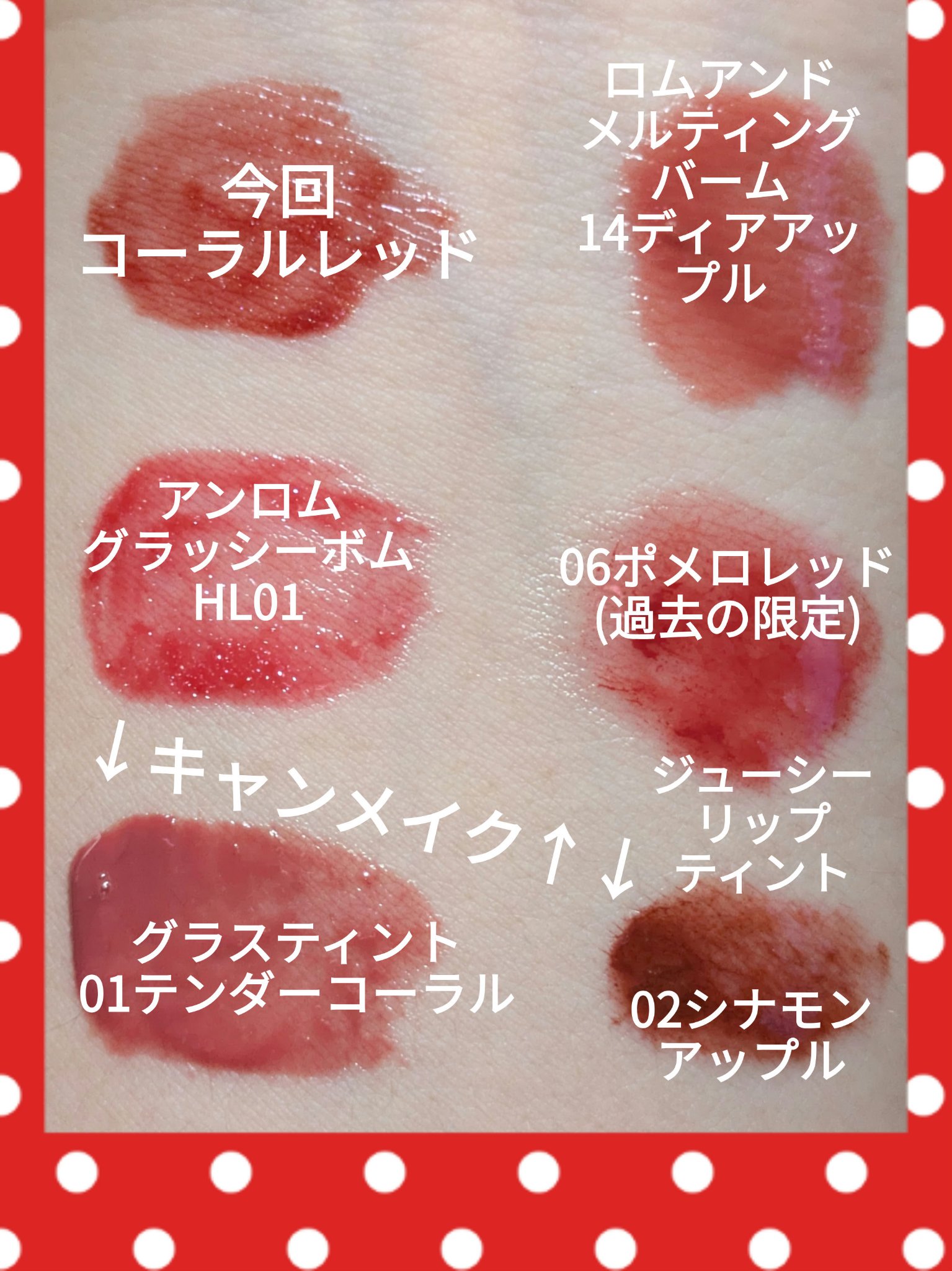 ちゅるちゅるで色持ちもいい!新作リップです🫧 キャンメイクグラスティントシロップ 01テンダーコーラル¥1,078 うるうるの膜を張ったようなツヤ感が可愛いです♡ 01テンダーコーラルはイエベさん向けかと思いきや 唇のくすみがなくなって、顔色がパッと明るくなる夏っぽいコーラルで本当に可愛かったです🌻