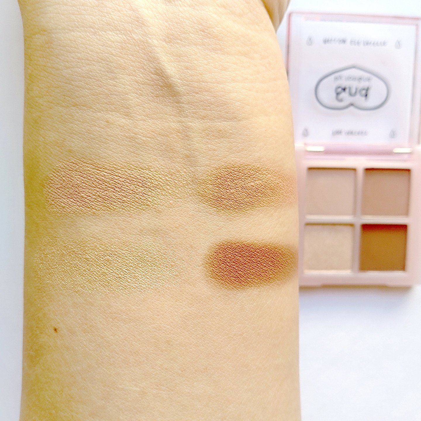 プチプラのクオリティじゃないっ!! 発売前からチェックしていたけれど、ここまで可愛いとは…😆 絶妙カラーで目もとのくすみを飛ばして*明るい印象に🩷 横割りグラデーションでメイクし、立体感をより出したかったので最後に1番左のカラーを上まぶたの真ん中と涙袋にのせています🙆 肌馴染みも良くて粉飛びも感じにくかったです💕 ブラウンの方も店頭に出てたら買おうかな💓