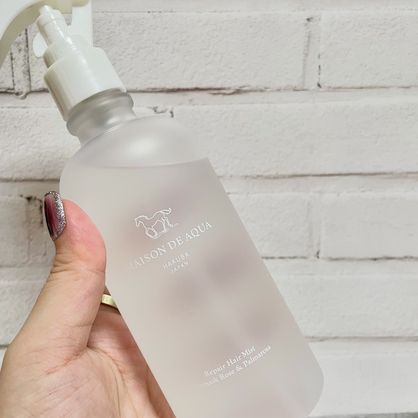 リペアヘアミストは、毛髪だけでなく頭皮ケアも出来ちゃいます(*^^*)頭皮ケアもダメージケアもしていきましょう。 ダマスクローズとパルマローザの香りに癒されます。 軽い心地でさっぱりした使用感。ストレスフリー🙆♀️ 肌にぐんぐん入っていって内側から潤ってる感じがする~☺️