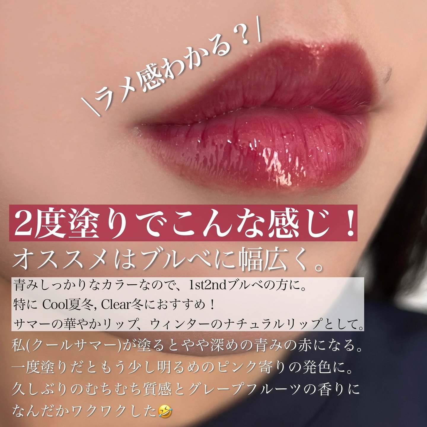 もーーーまずパッケージが可愛すぎるよね😢❤️❤️ 迷いなく全色買ってしまったよ…! 既存のジューシーラスティングティントに比べて ⚪︎サラッとしたリキッド ⚪︎やや薄づきな発色⚪︎艶々? 個人的にはロムアンドでは 最近こそ出るようになったけど ブルベ向きのカラー(特にサマー)でドンピシャが あんまり無いなあと思っていたので、 今回とっっても5〜8番が可愛くて ひじょーーーーーーに!満足しております💪❤️❤️